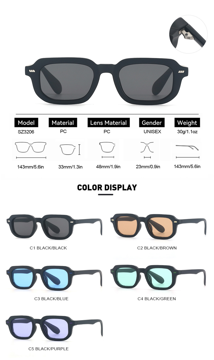 2025新款太阳镜欧美风设计师复古方框男女士简约防晒方框时尚米钉