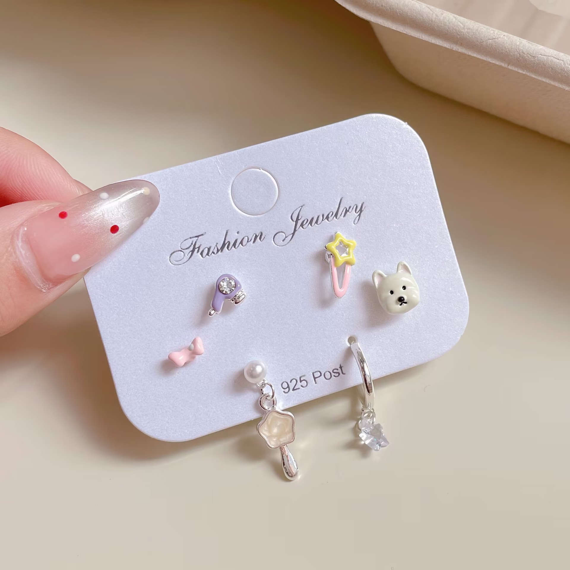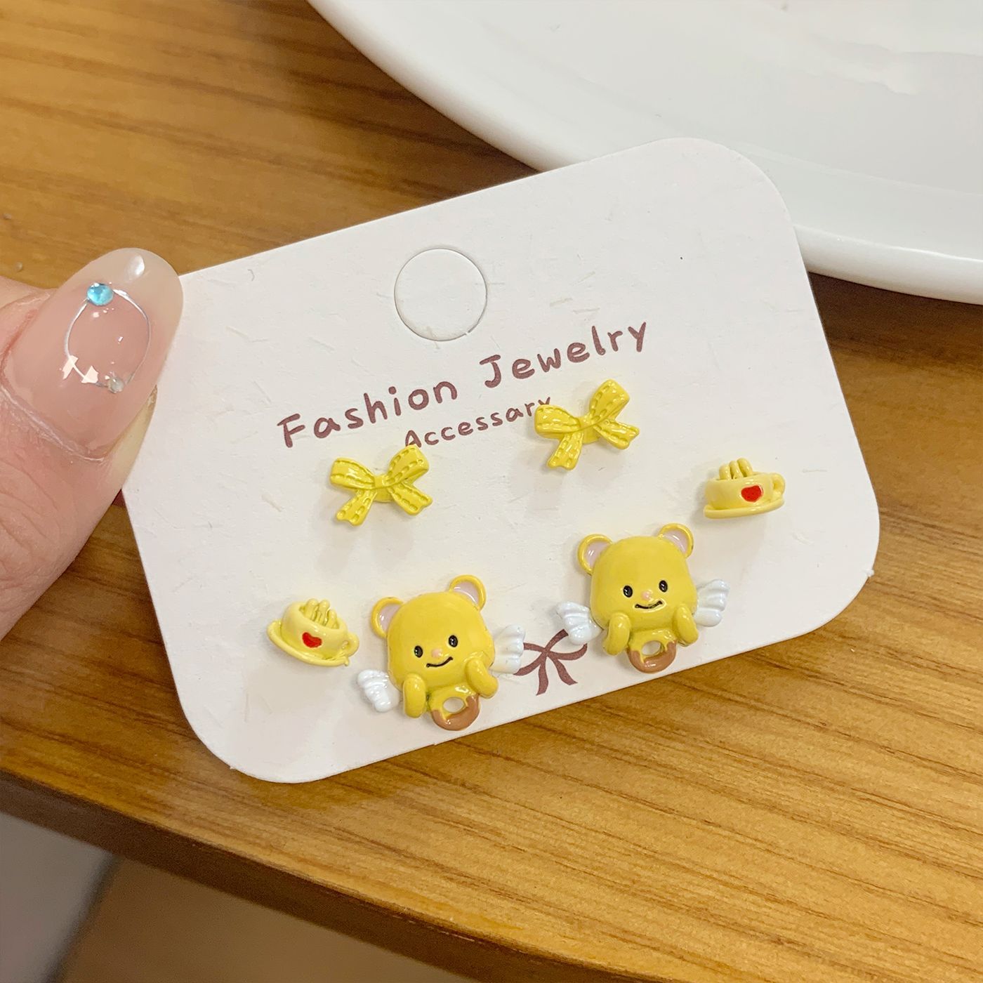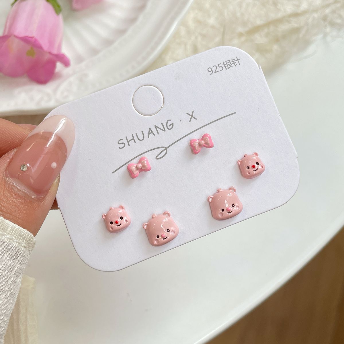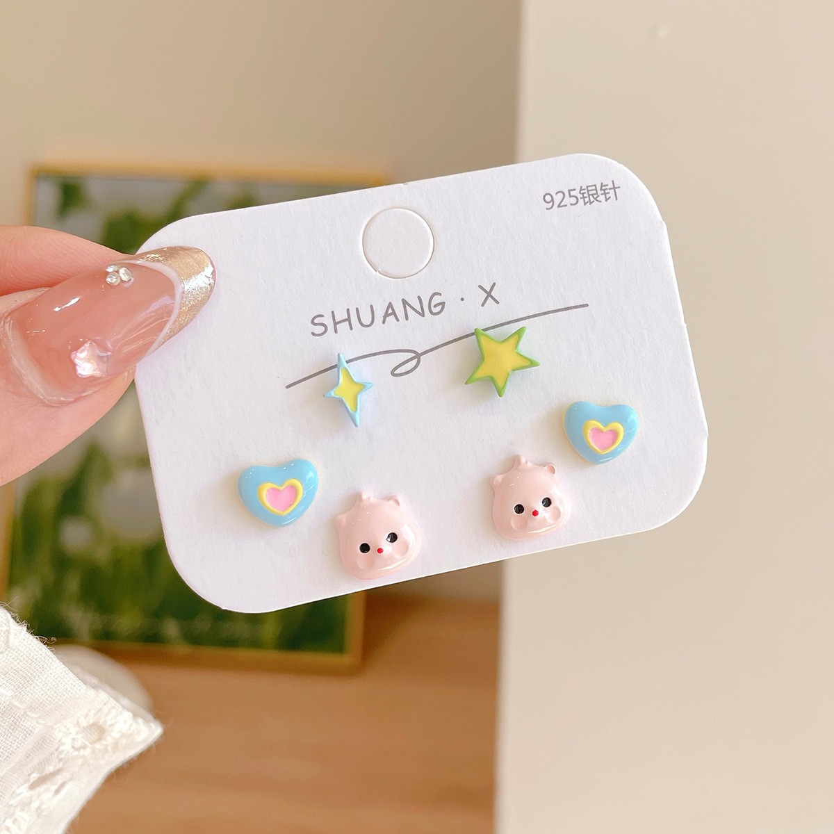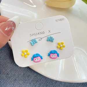 小清新卡通可爱耳钉三件套女银针个性小巧童趣小海狸小众夏季耳饰
