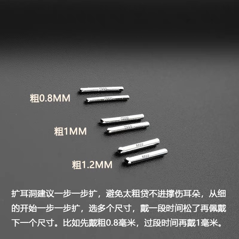 s999纯银耳骨钉男女简约学生隐形扩耳洞加粗耳棍足银耳棒工厂批发
