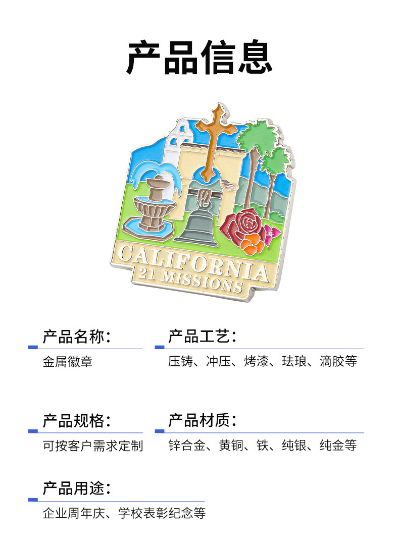 金属徽章定制锌合金烤漆胸章定做珐琅校徽胸针卡通滴胶胸牌制作