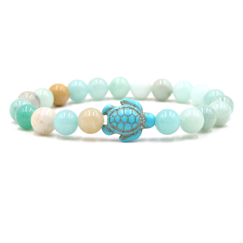 2018年新款绿色松石乌龟火山石白松石多款天 然石男女款弹力手链