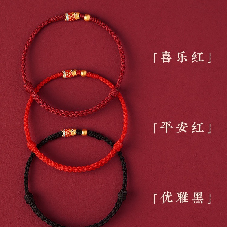 锦鲤本命年红手绳红绳手链女款编织手绳男款脚链上岸礼物