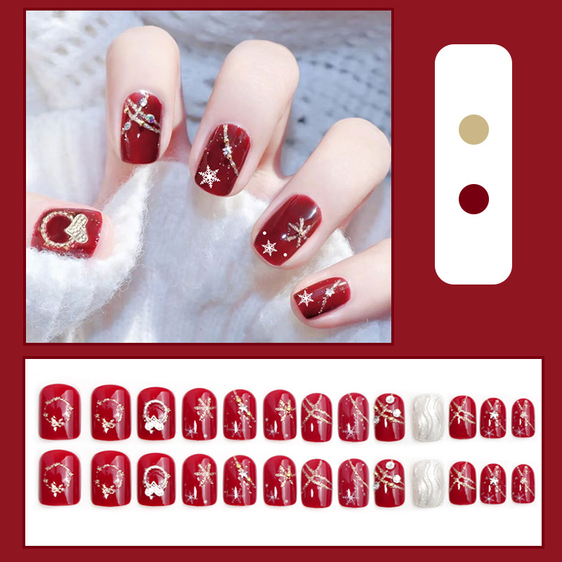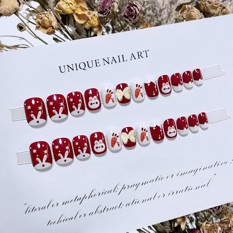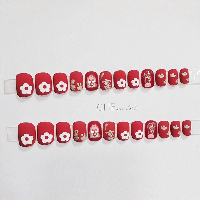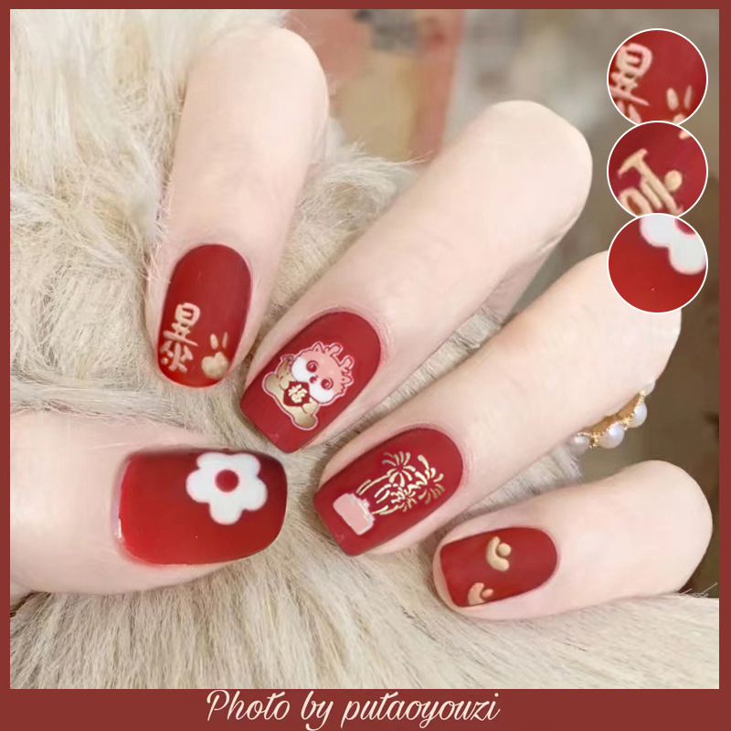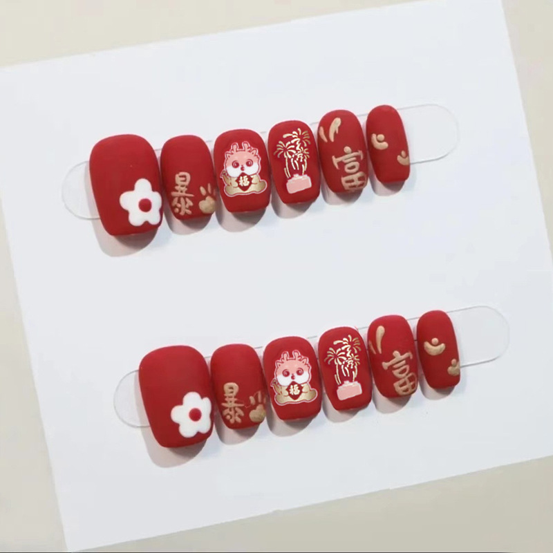 X315假指甲贴片可拆卸穿戴甲过年款喜庆拿富新年龙手工封层光疗甲