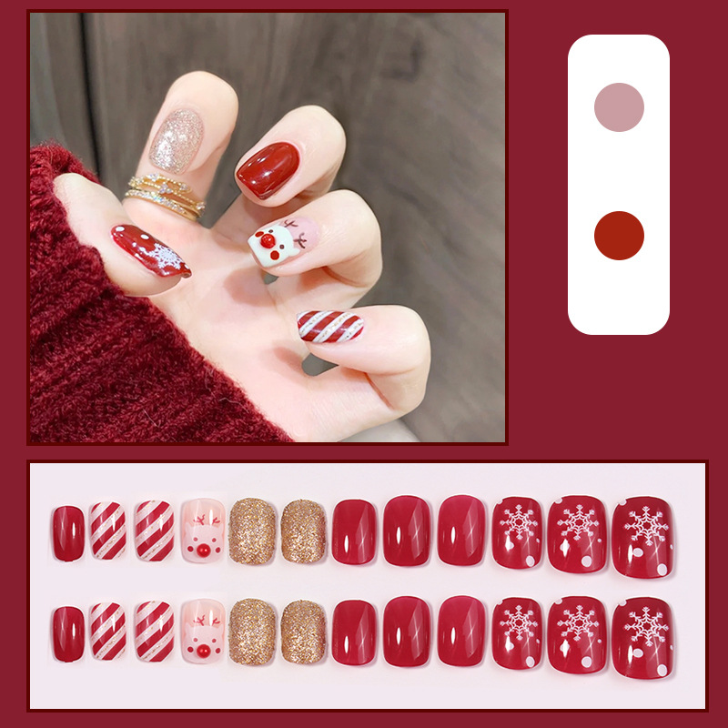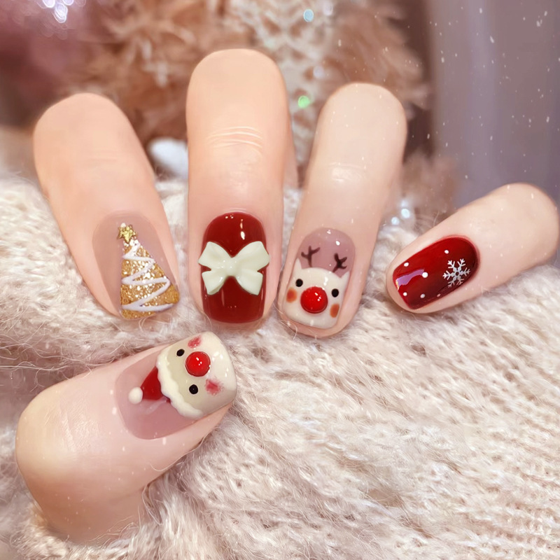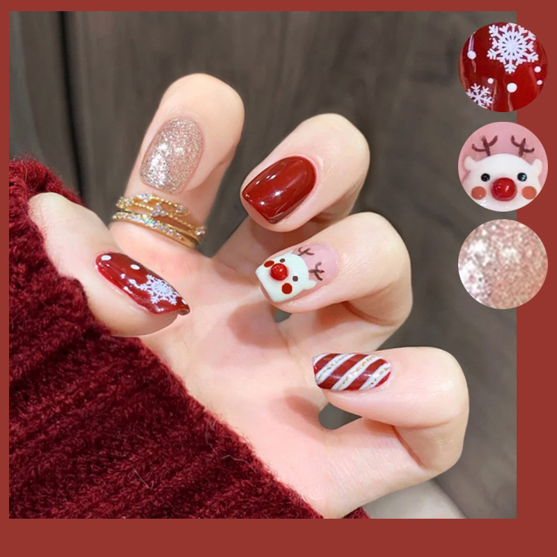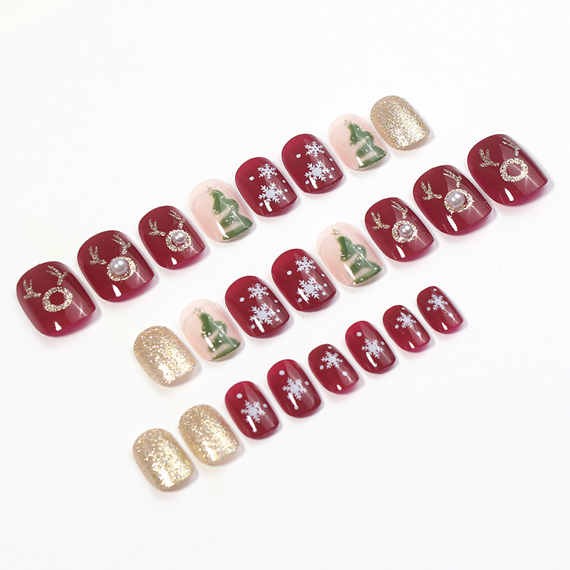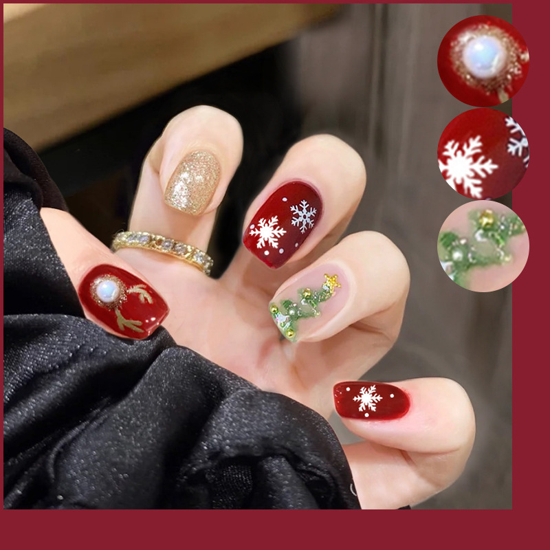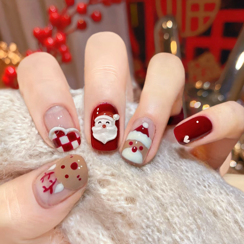 X315假指甲贴片可拆卸穿戴甲过年款喜庆拿富新年龙手工封层光疗甲