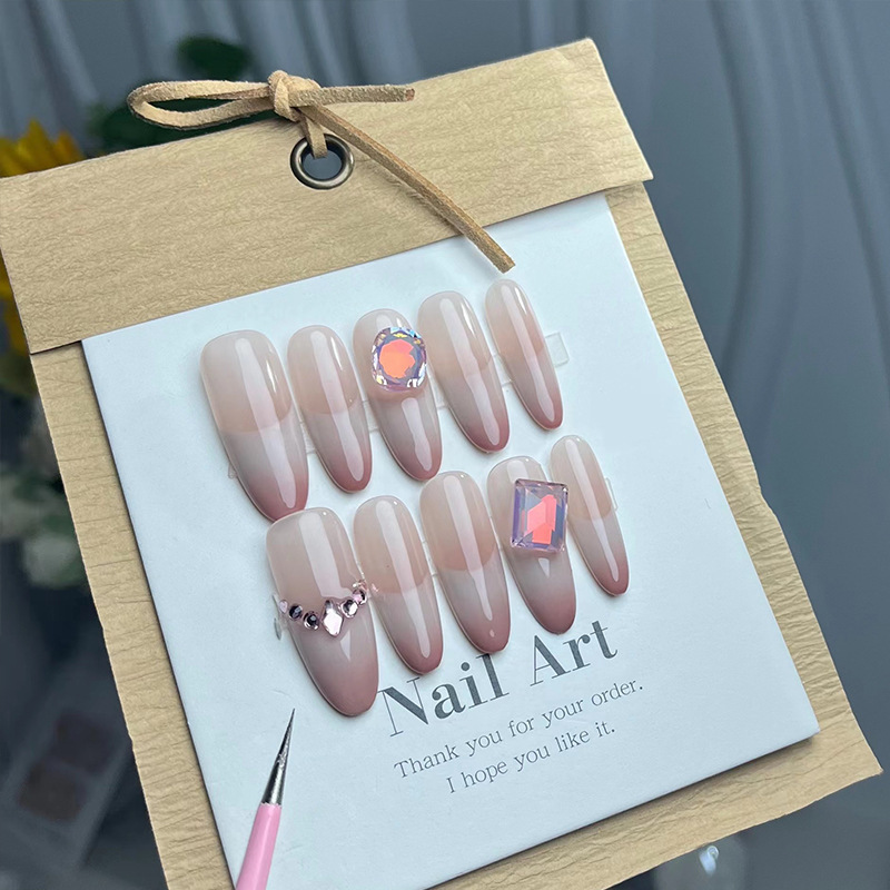 新款穿戴甲美甲显白裸色长款极光温情闪钻美甲贴假指甲手工穿戴甲
