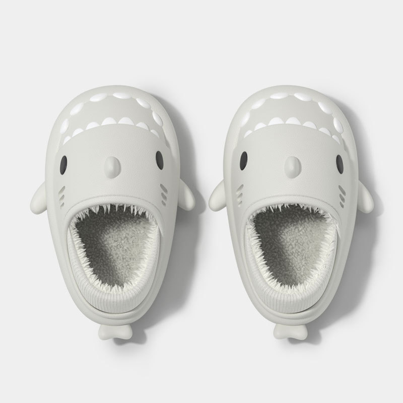 成人软底包跟鲨鱼棉拖鞋女情侣eva毛毛棉鞋冬防水厚底毛绒拖鞋男
