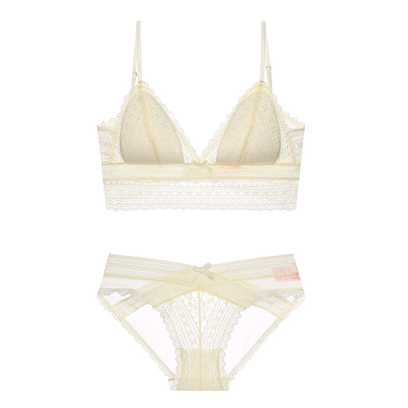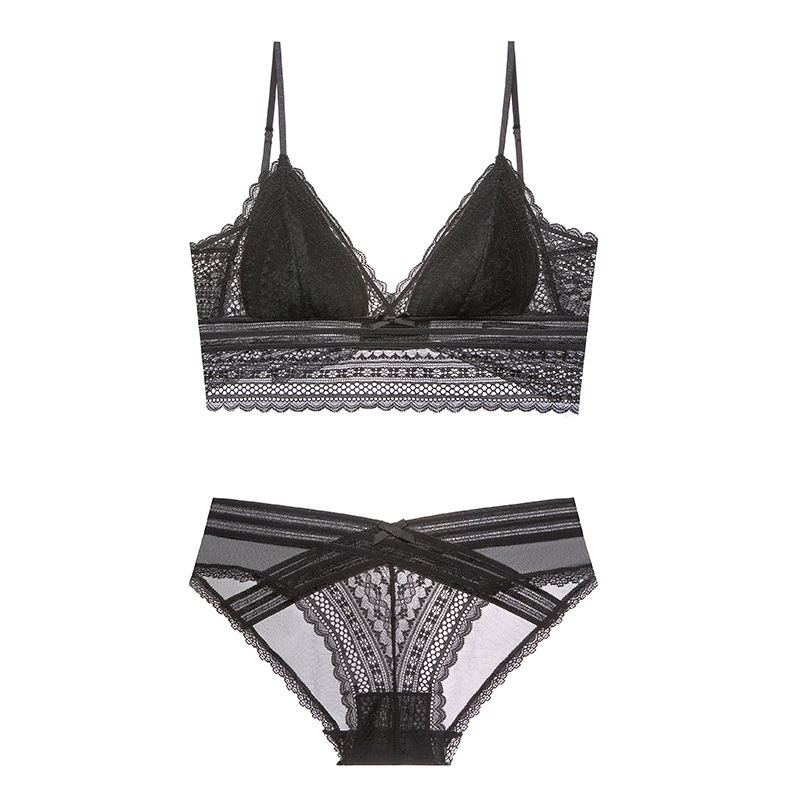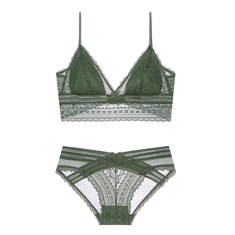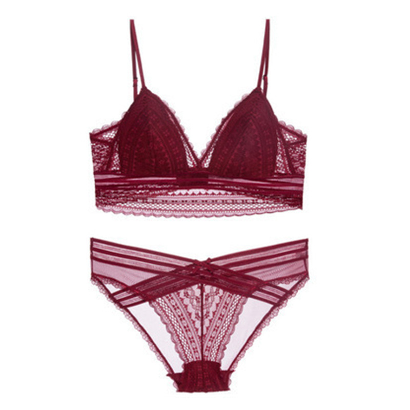 法式内衣女夏季美背薄款蕾丝性感文胸大胸显小三角杯内衣套装