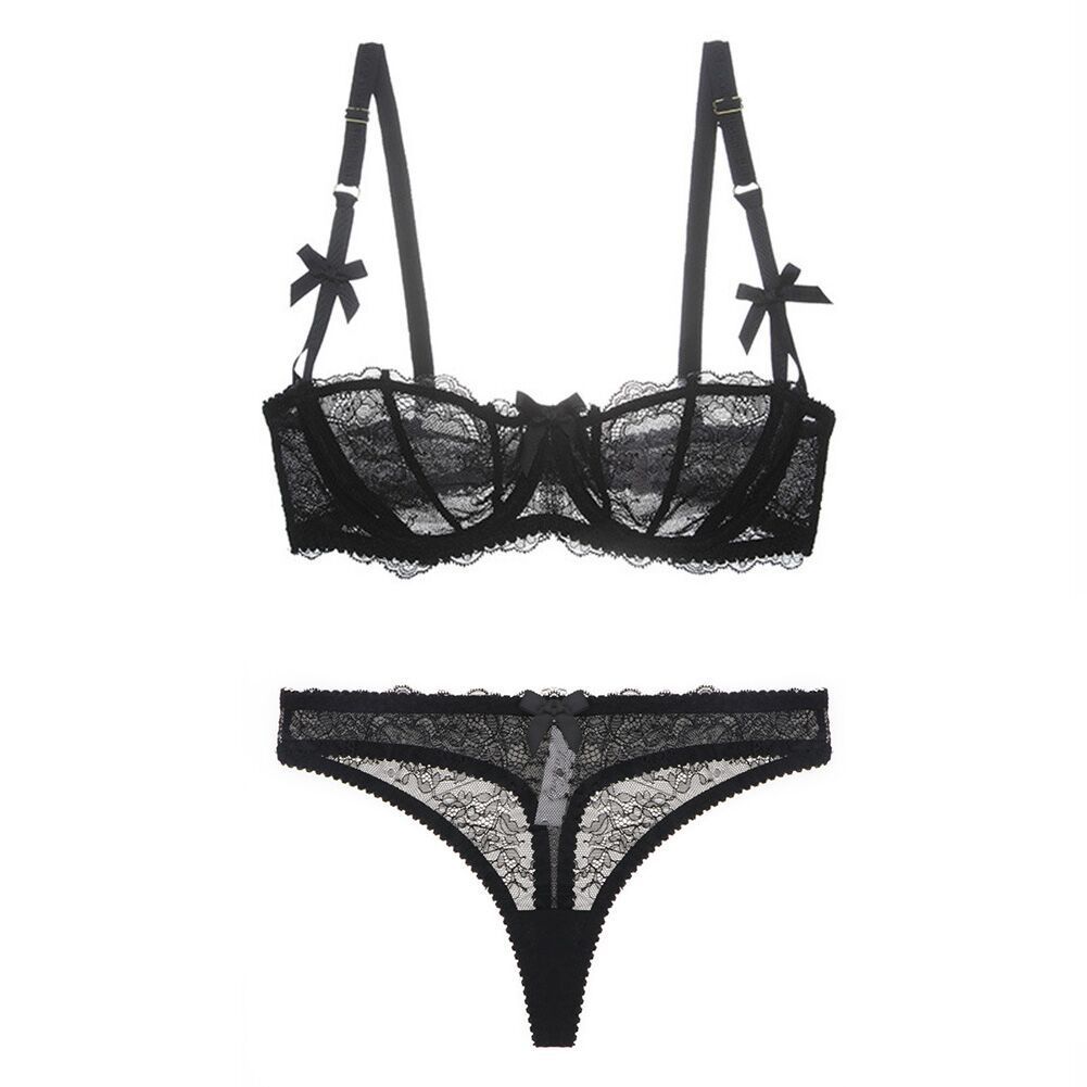 现货秒发 厂家批发 一件代发性感1/2半杯蕾丝文胸套装配丁字裤