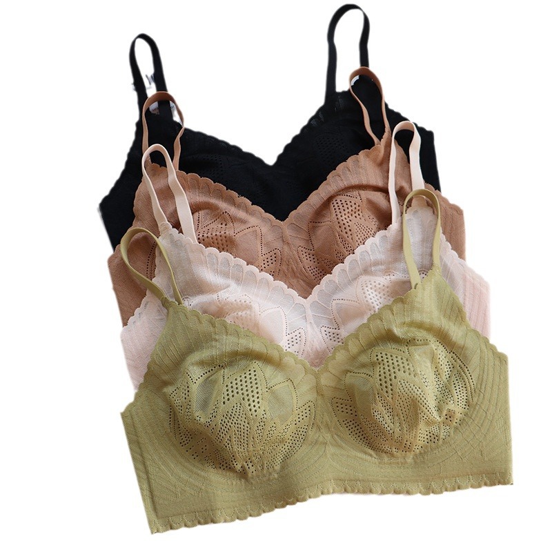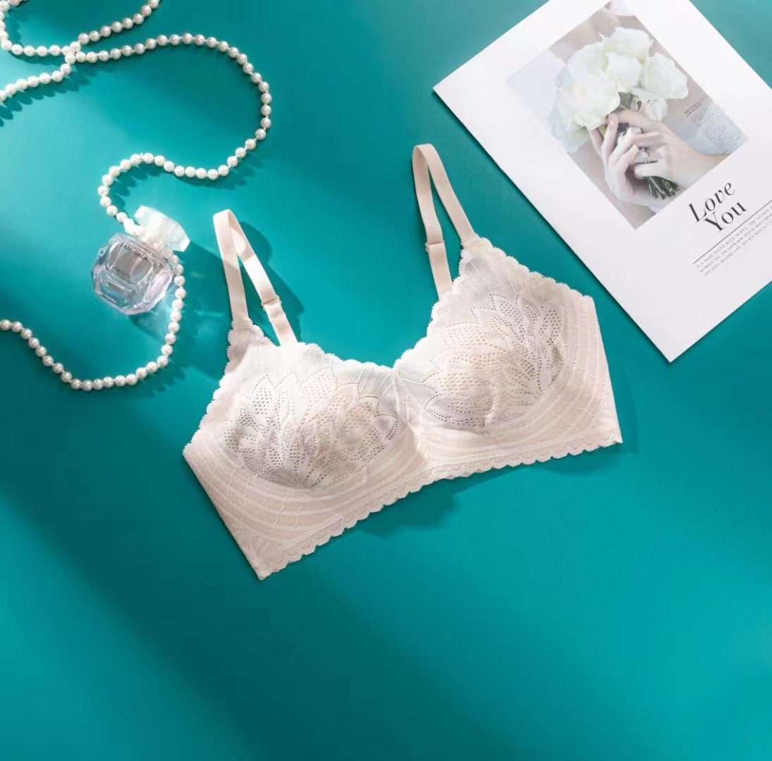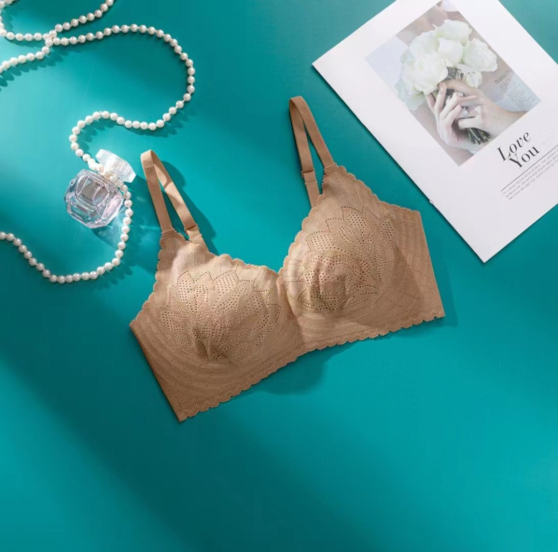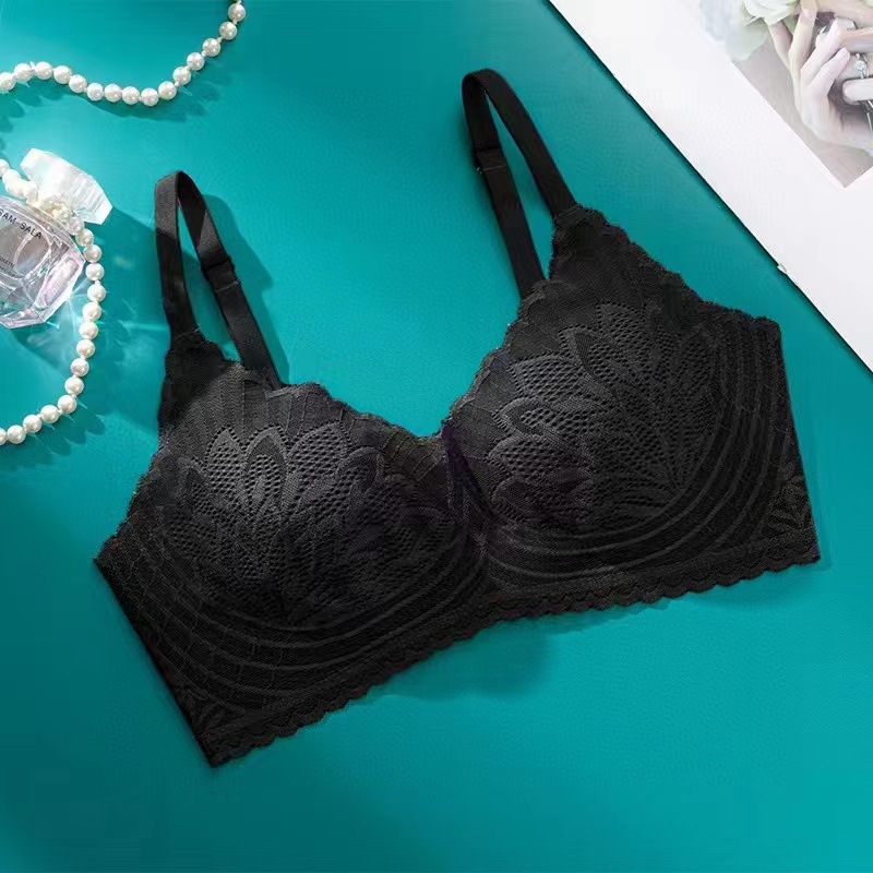 性感超薄透气无痕内衣大胸显小防下垂无钢圈收副乳蕾丝乳胶垫文胸