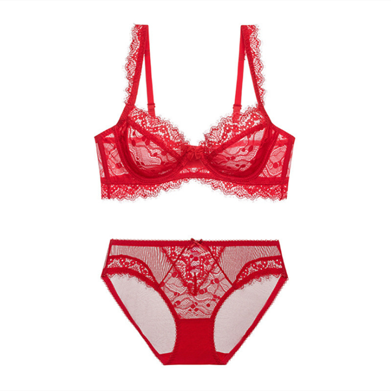 性感蕾丝内衣 眼睫毛薄款无海绵大胸显小女士文胸套装胸罩