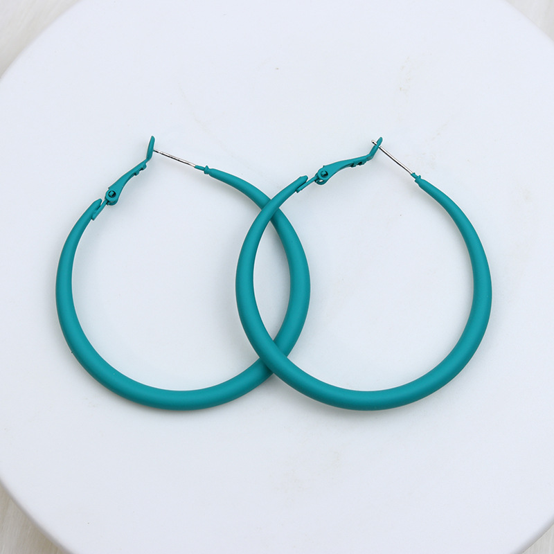 新款合金彩色烤漆简约几何耳圈耳环糖果彩色圆形夸张耳坠耳饰品女