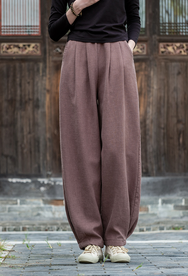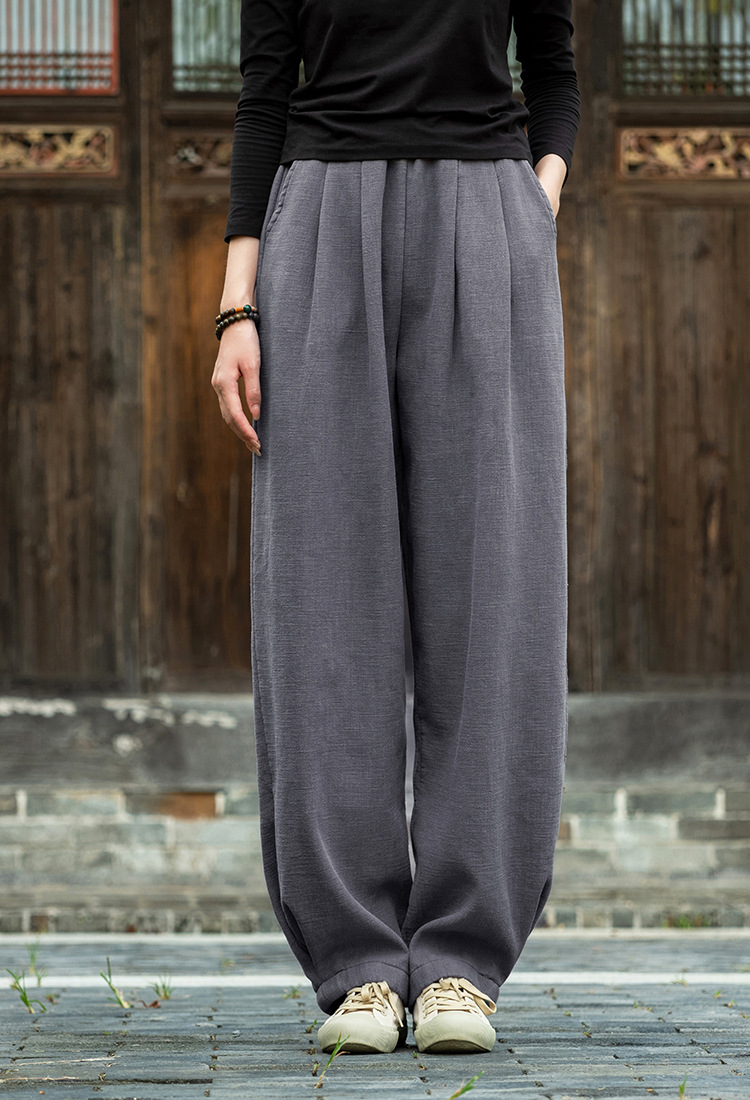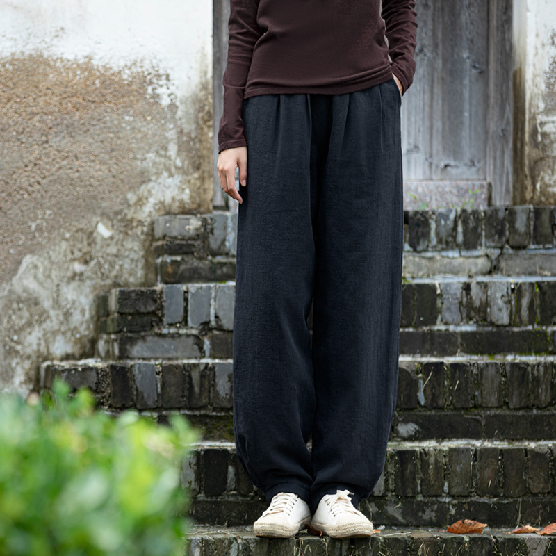 棉麻女装25春夏新款文艺砂洗宽松棉麻显瘦休闲长裤女式亚麻灯笼裤