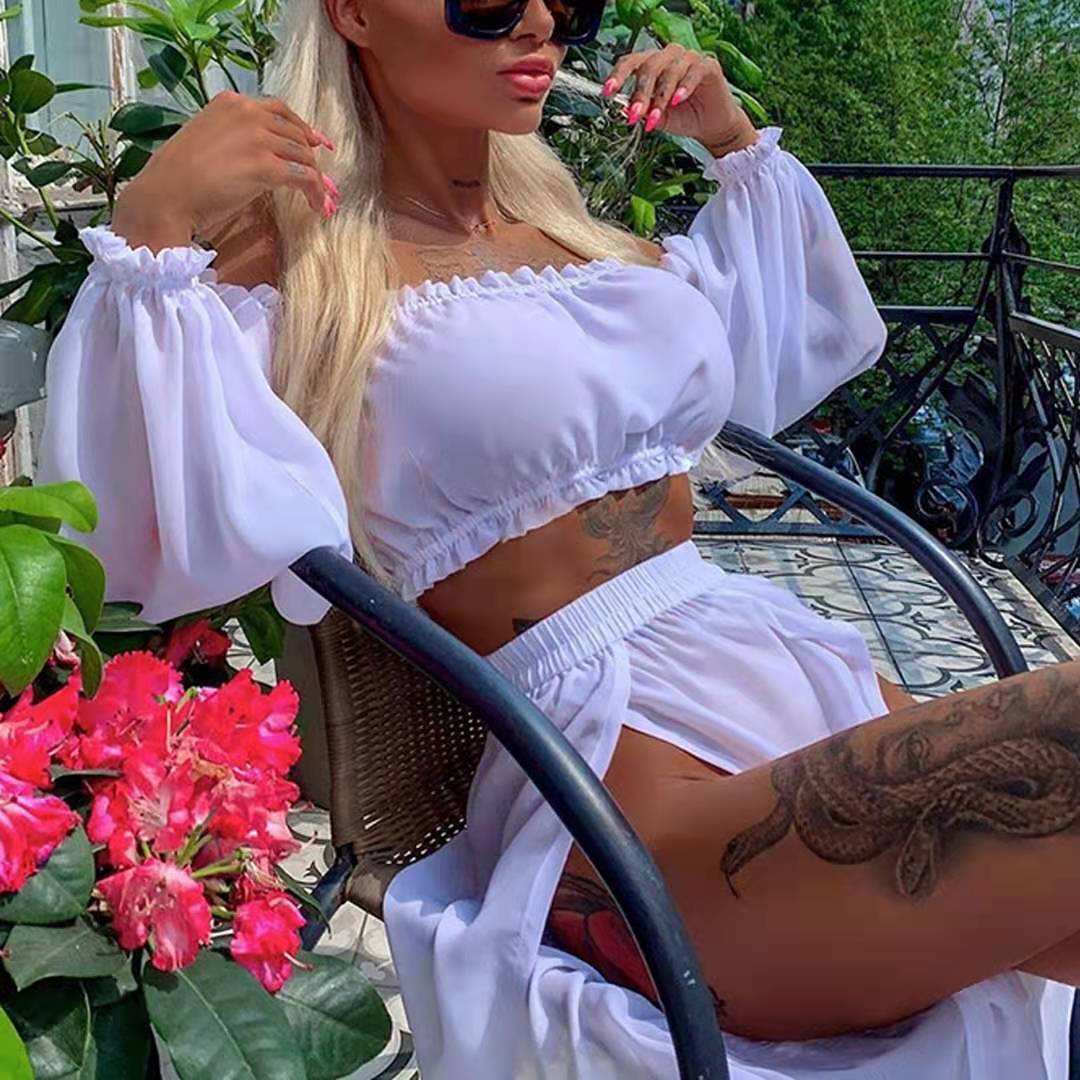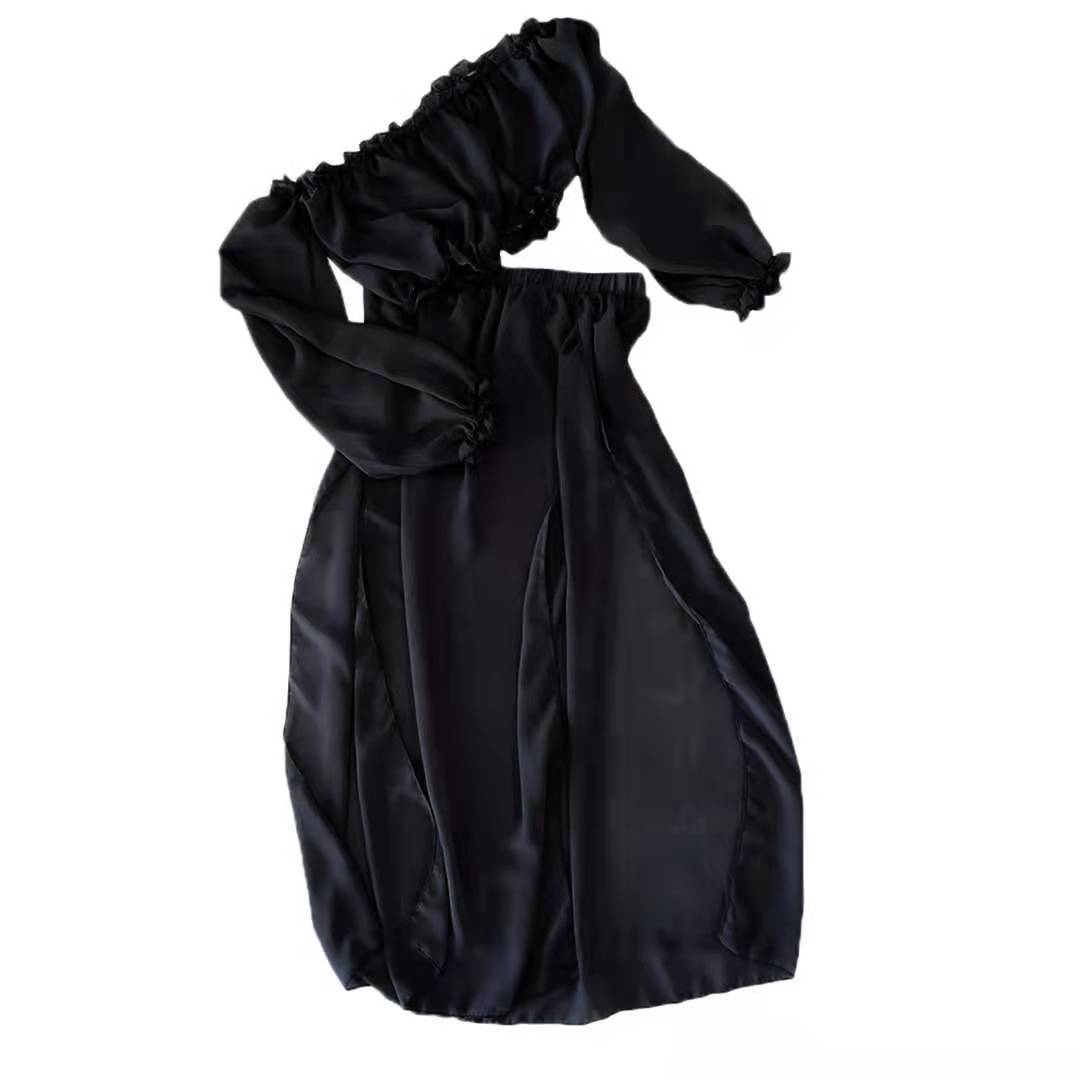 裙子沙滩长袖高腰2021套装长款抹胸裙连衣裙女衣服女装秋欧美上衣