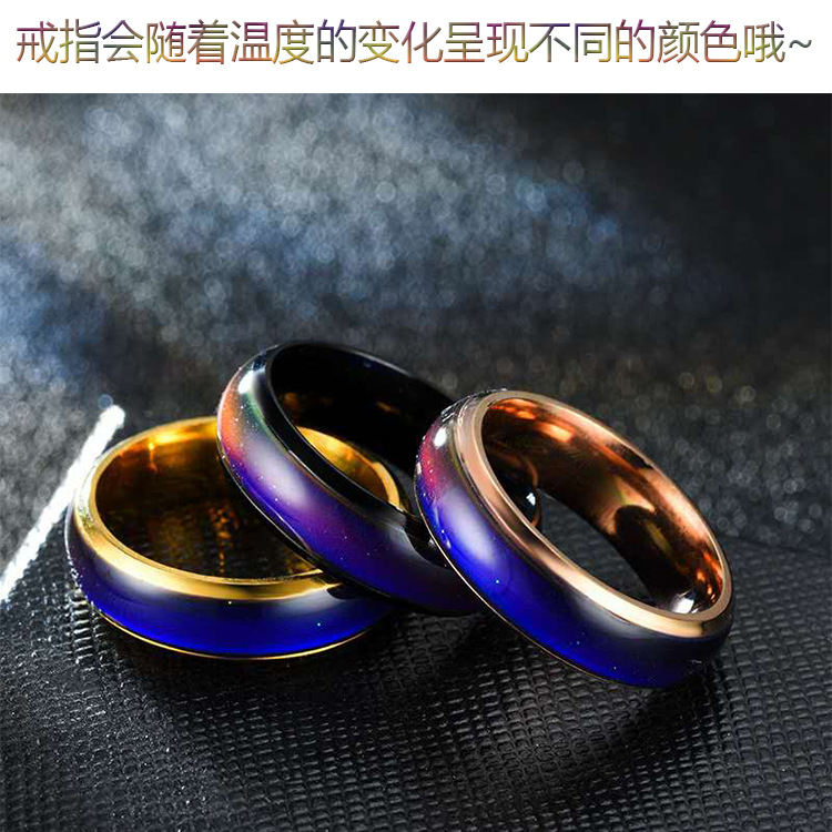 wish戒指钛钢空白感温变色戒指 不锈钢情侣戒指 男士跨境爆款配饰