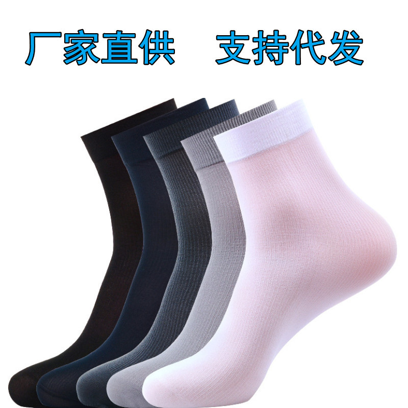 冰丝袜子夏季男薄款商务休闲中筒男袜竖条透气吸汗男士短丝袜批发