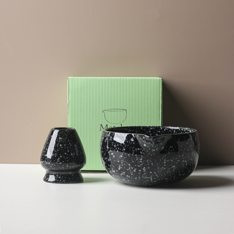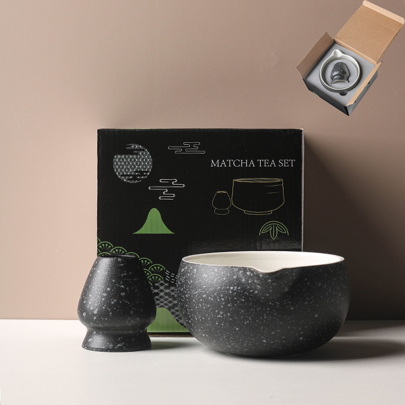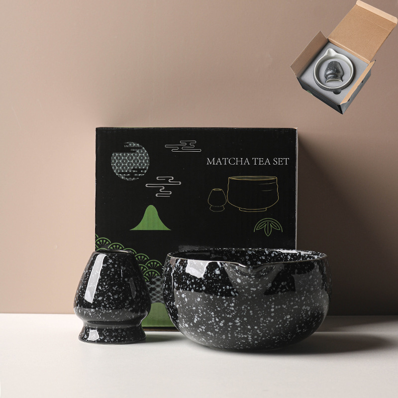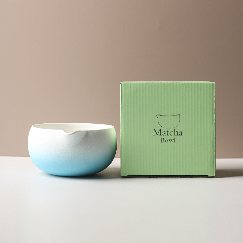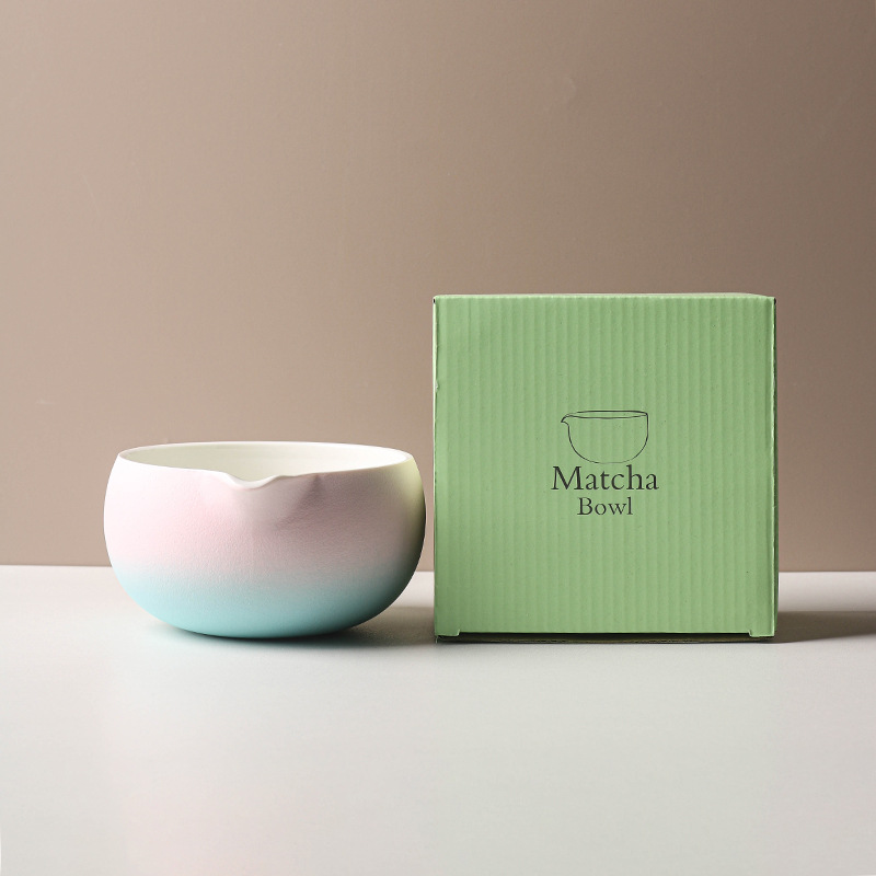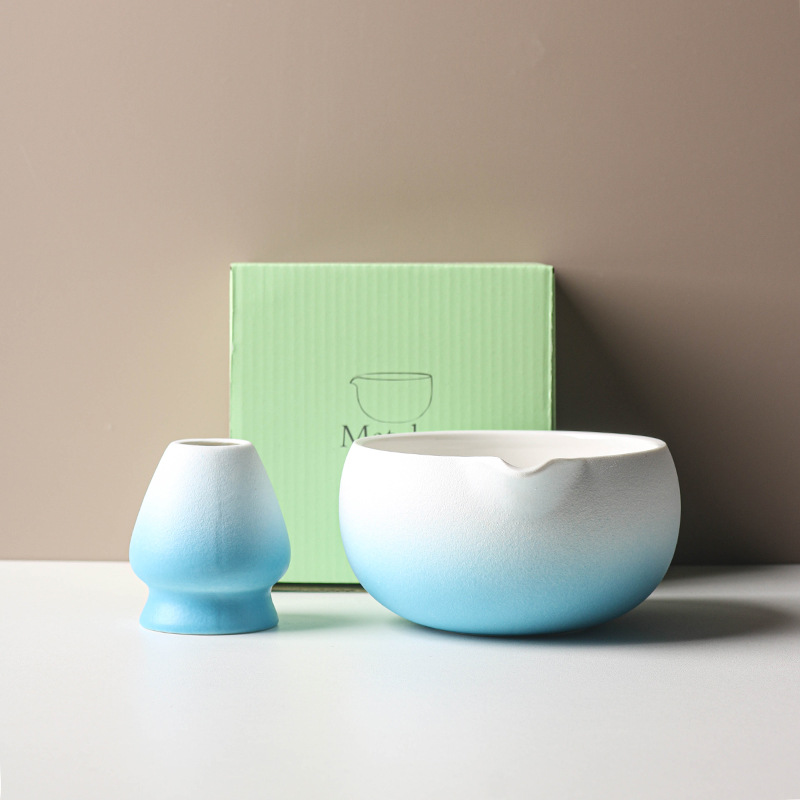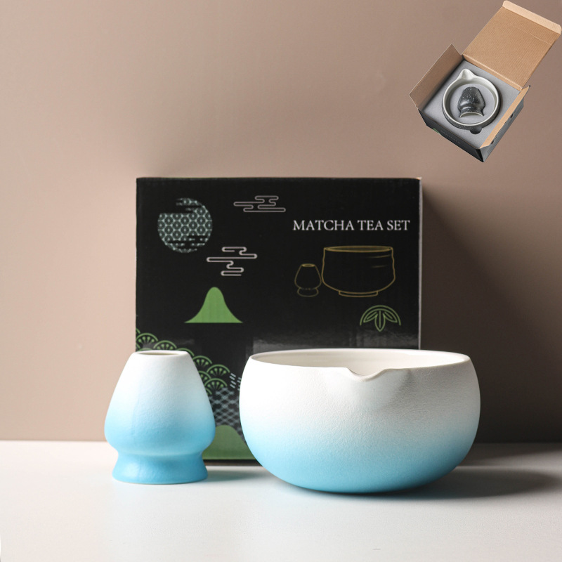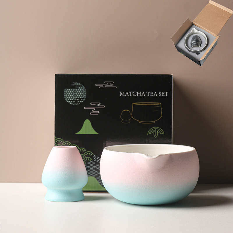 跨境专供抹茶碗渐变色日式抹茶茶具套装亚马逊抹茶碗带嘴礼品盒