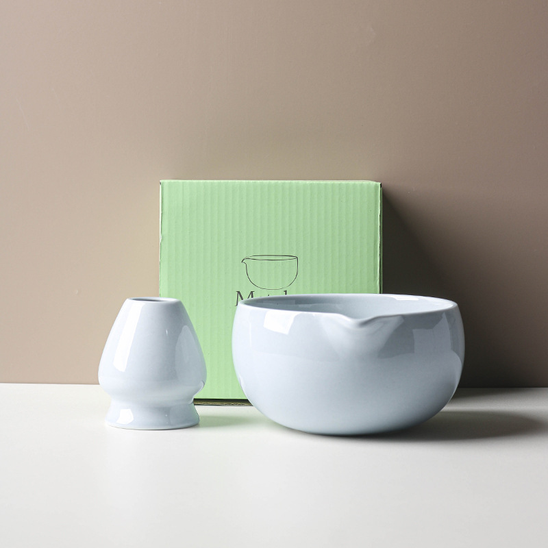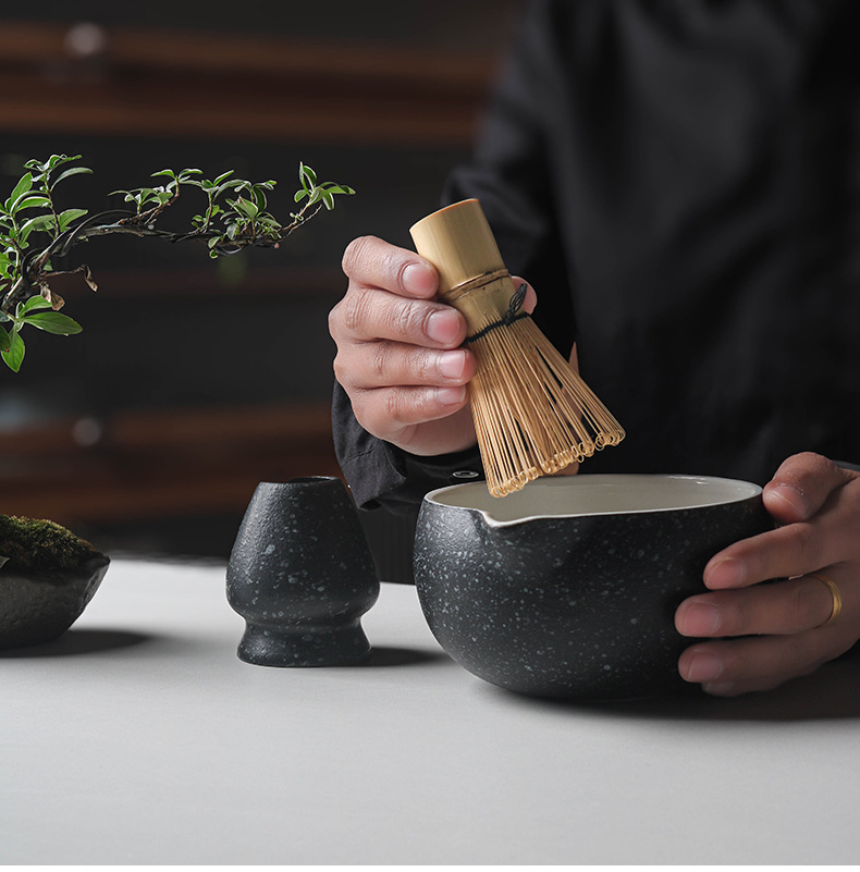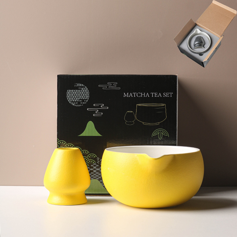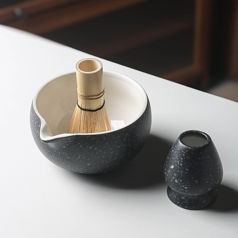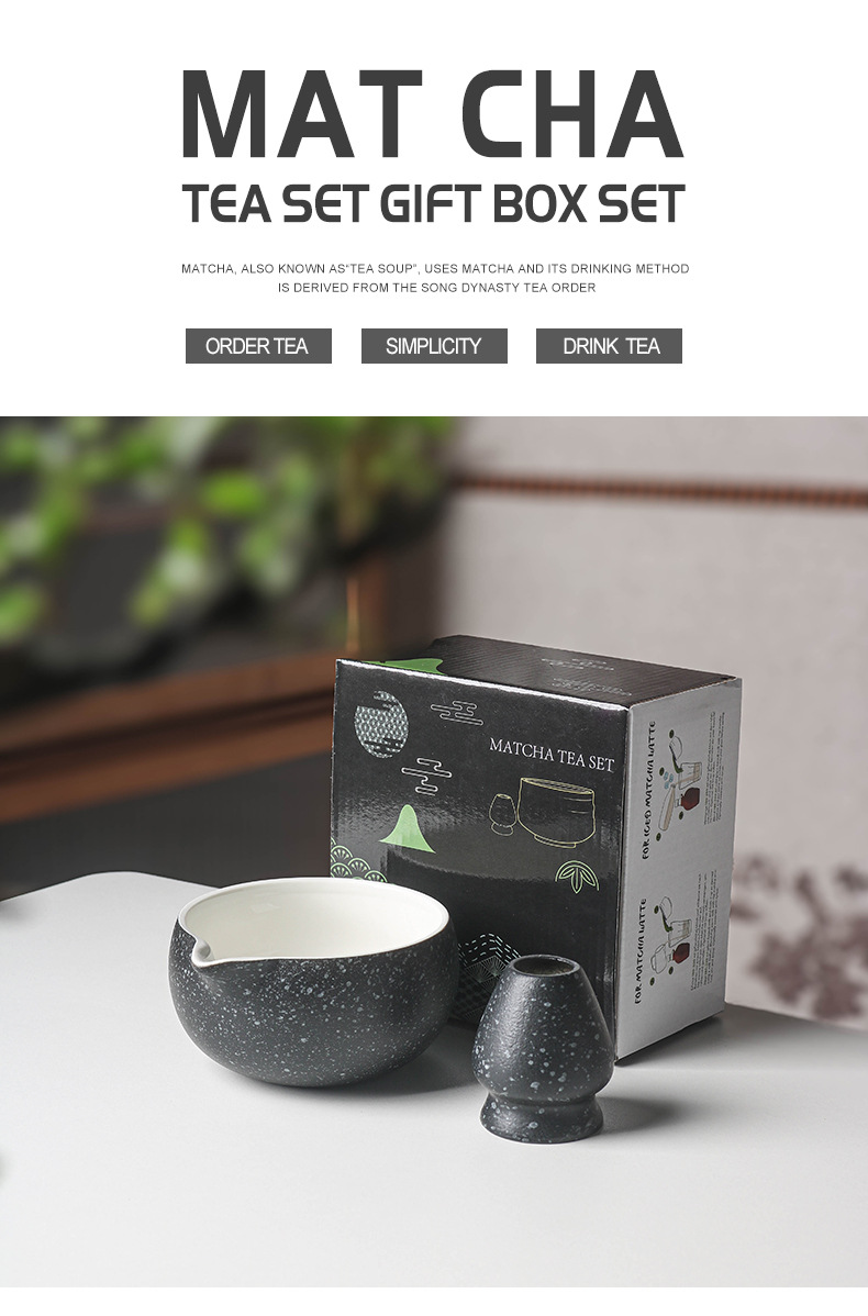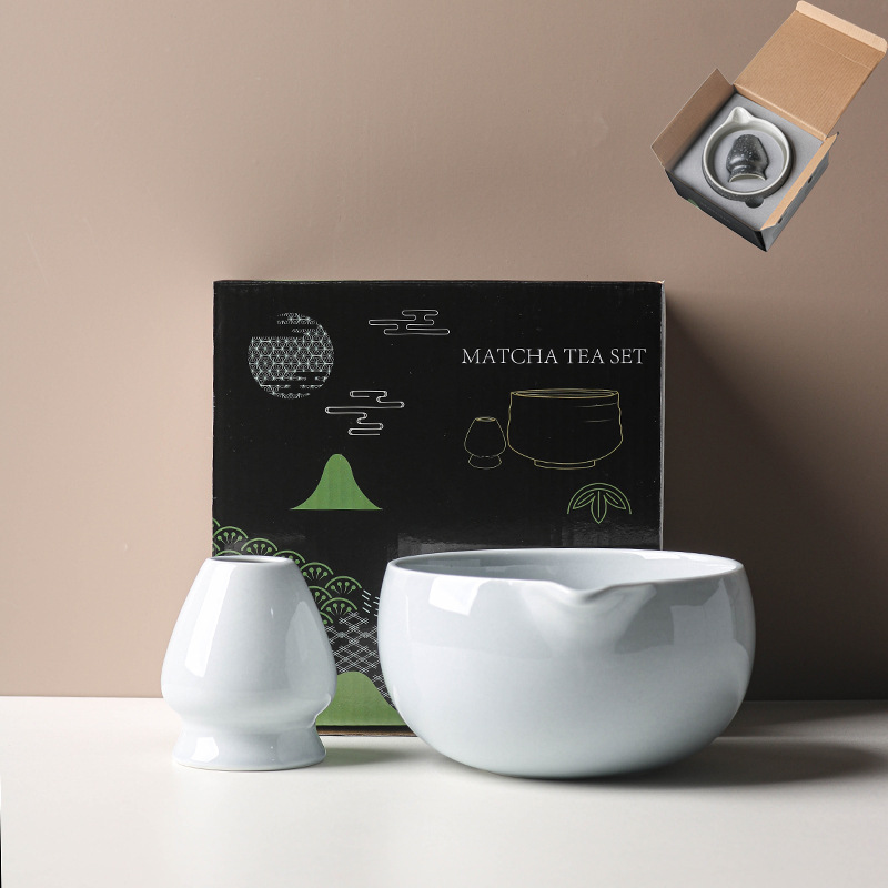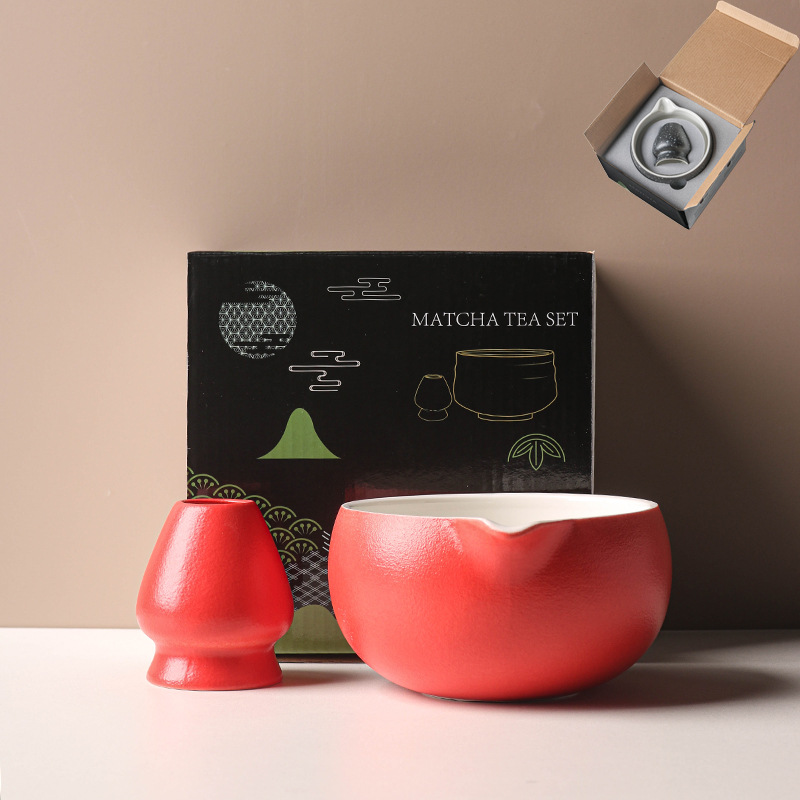 跨境专供抹茶碗渐变色日式抹茶茶具套装亚马逊抹茶碗带嘴礼品盒