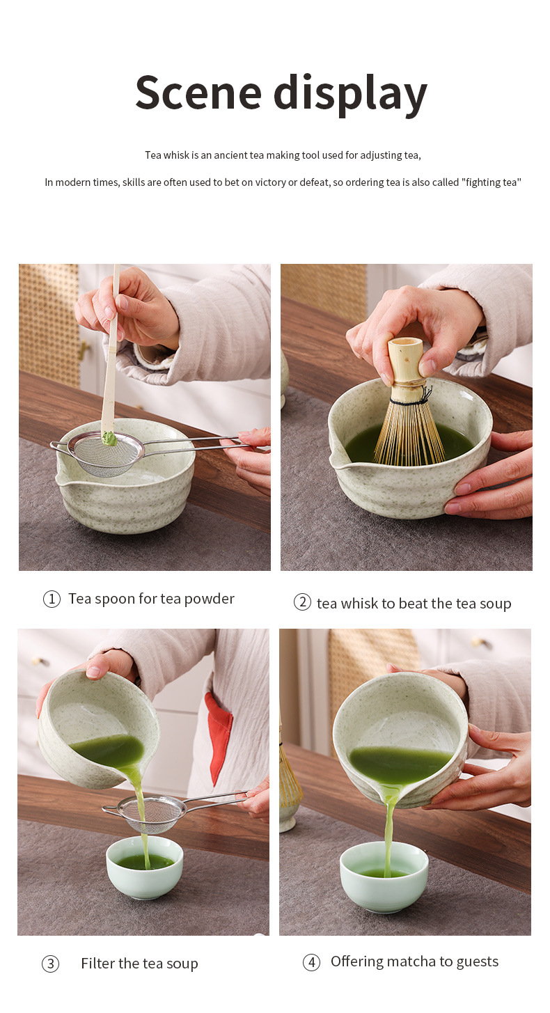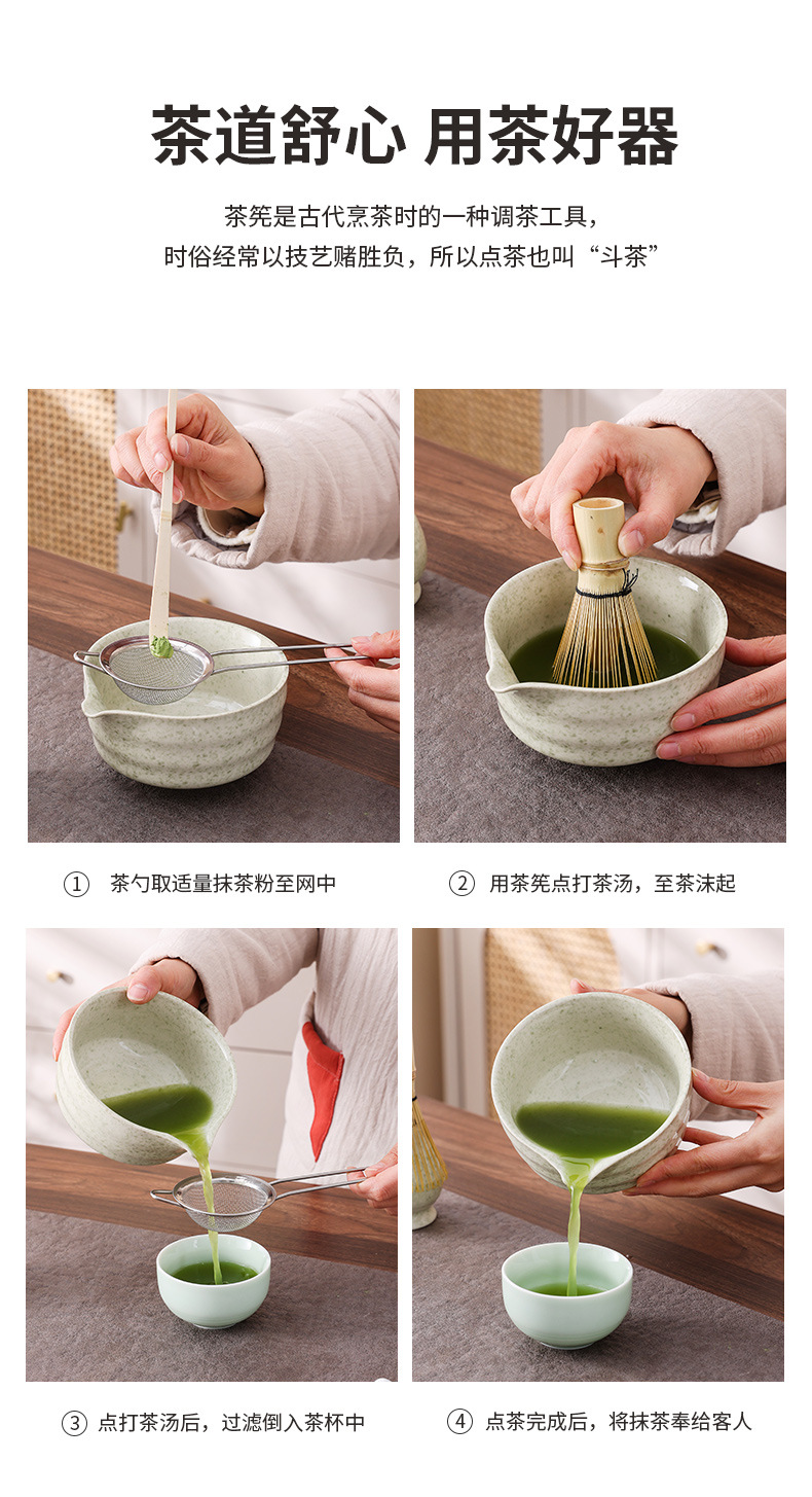日式抹茶碗打抹茶宋代点茶工具陶瓷茶碗茶杯搅拌器抹茶刷茶筅套装
