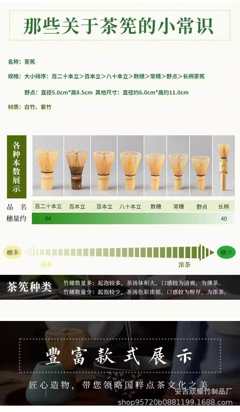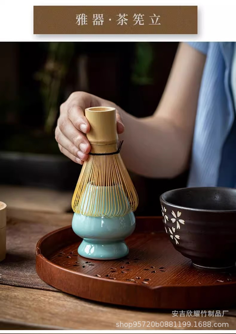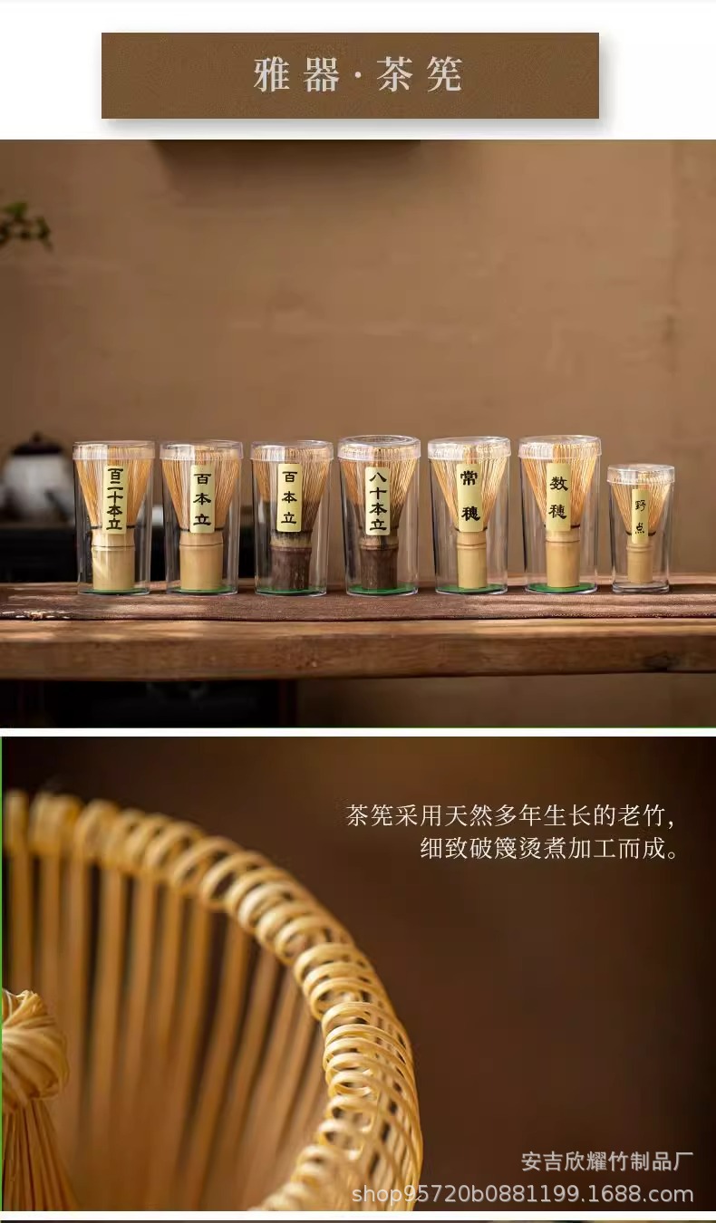 日式茶具套装白竹百本立茶筅手工抹茶刷子三件套紫竹八十茶道批发