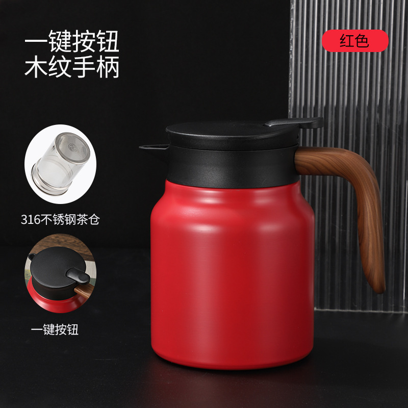 新款实木手柄焖茶壶茶水分离不锈钢保温壶定制商务礼品赠送批发