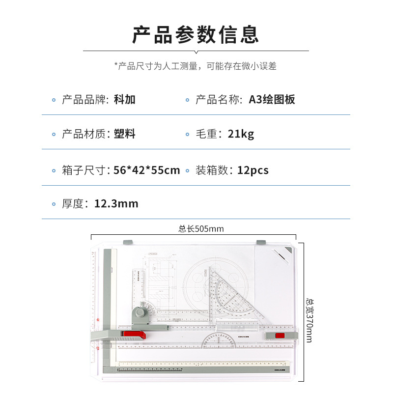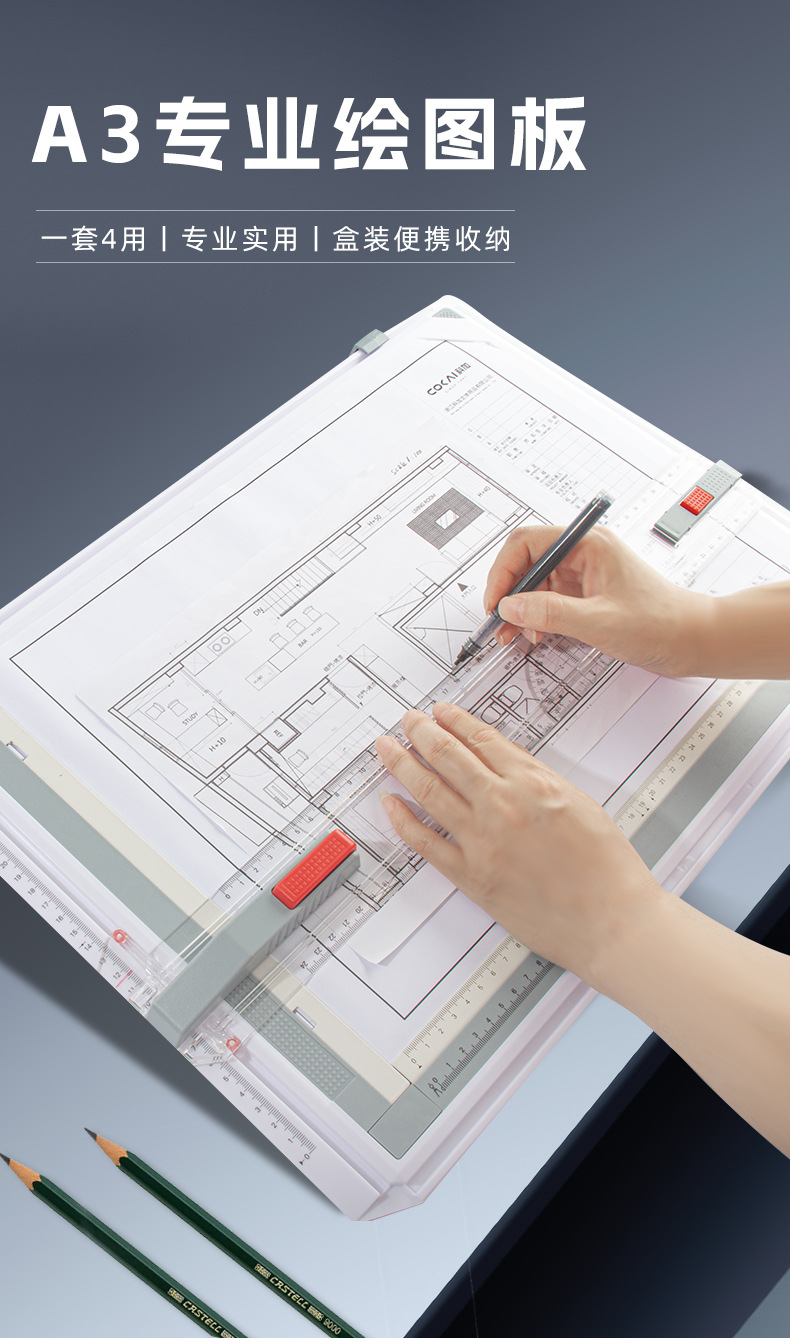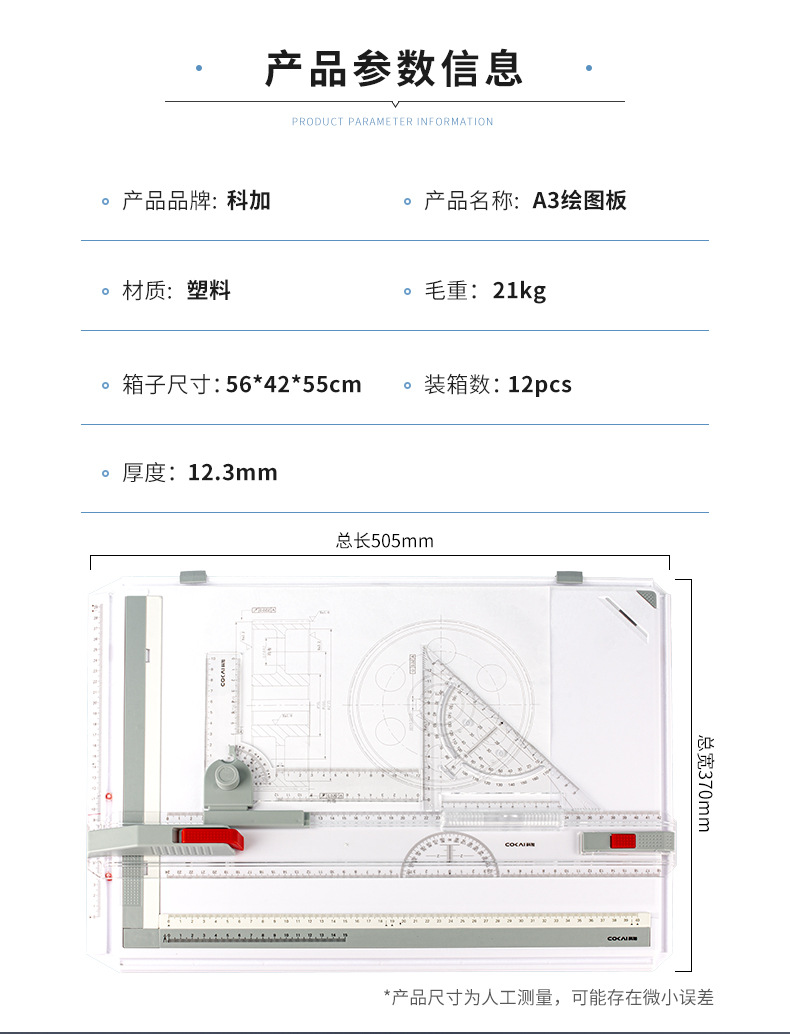 厂家直销科加A3绘图板建筑机械土木学生设计师国标划线制图工具