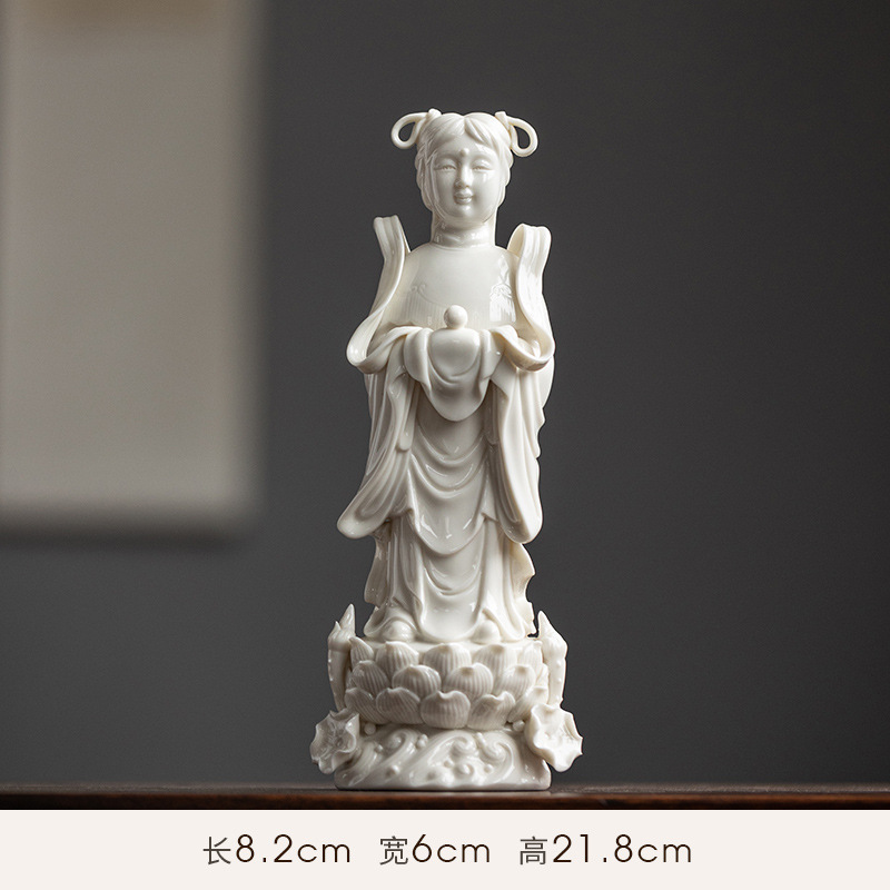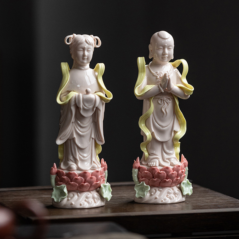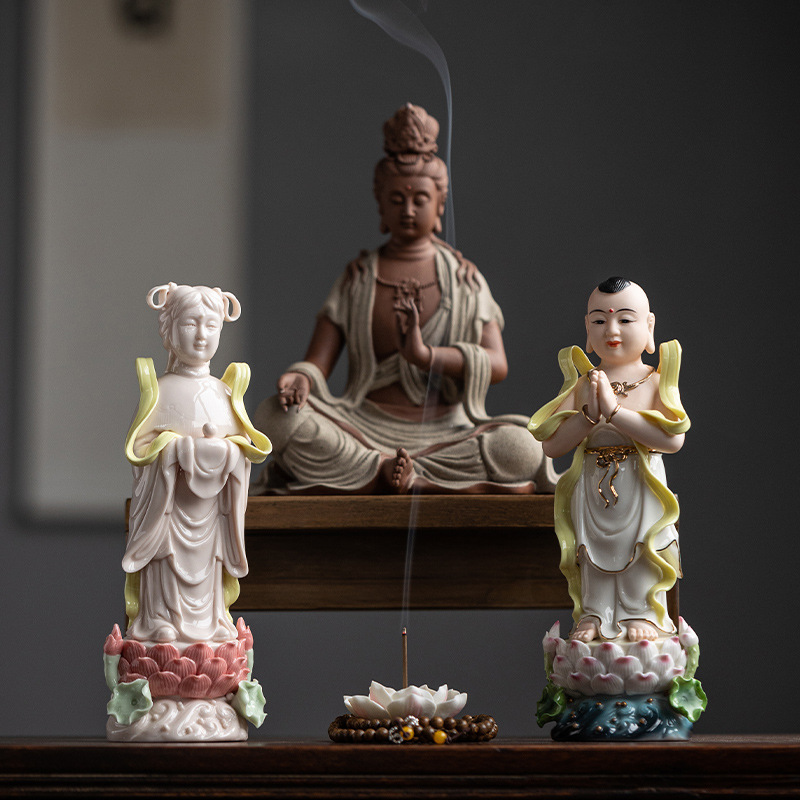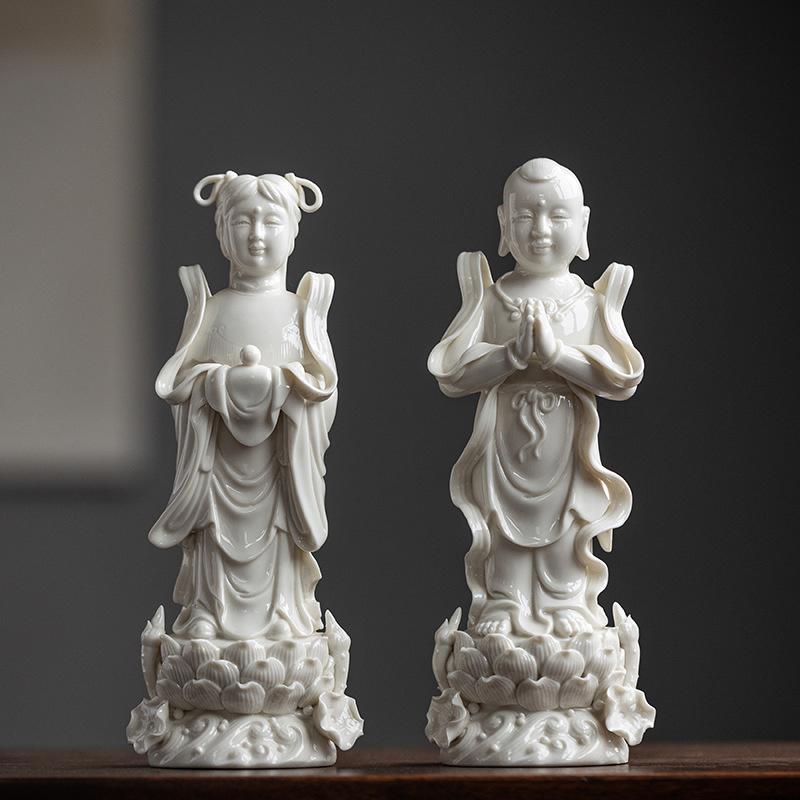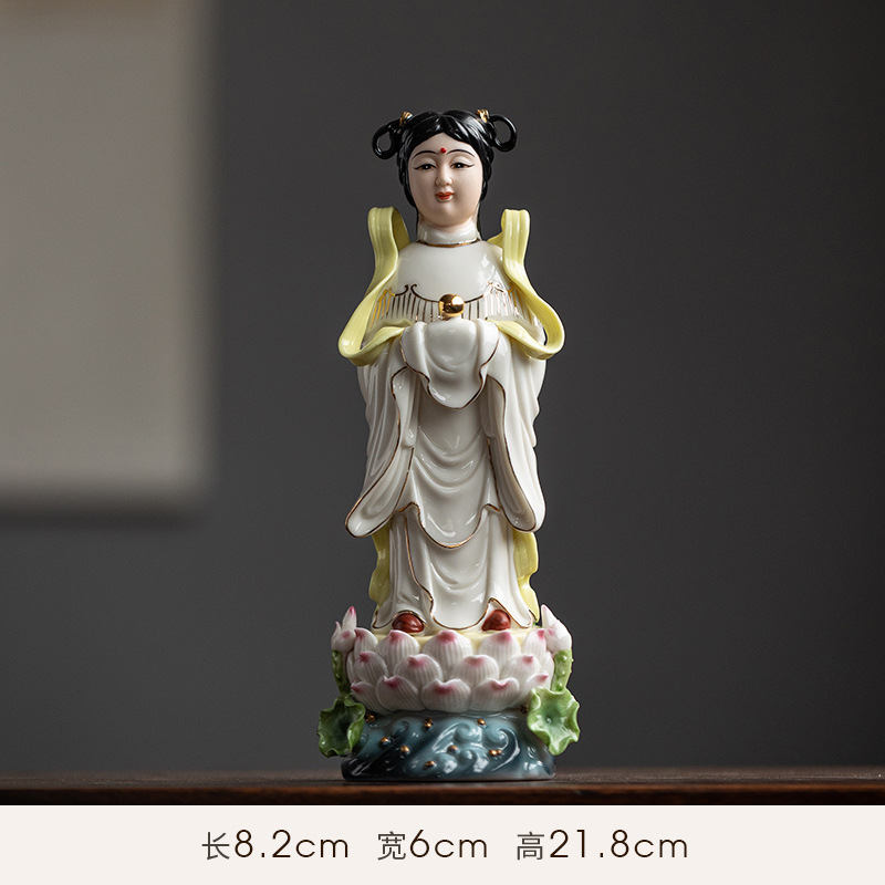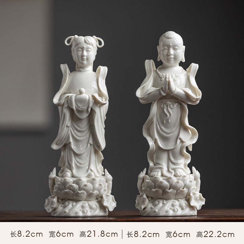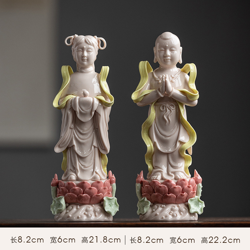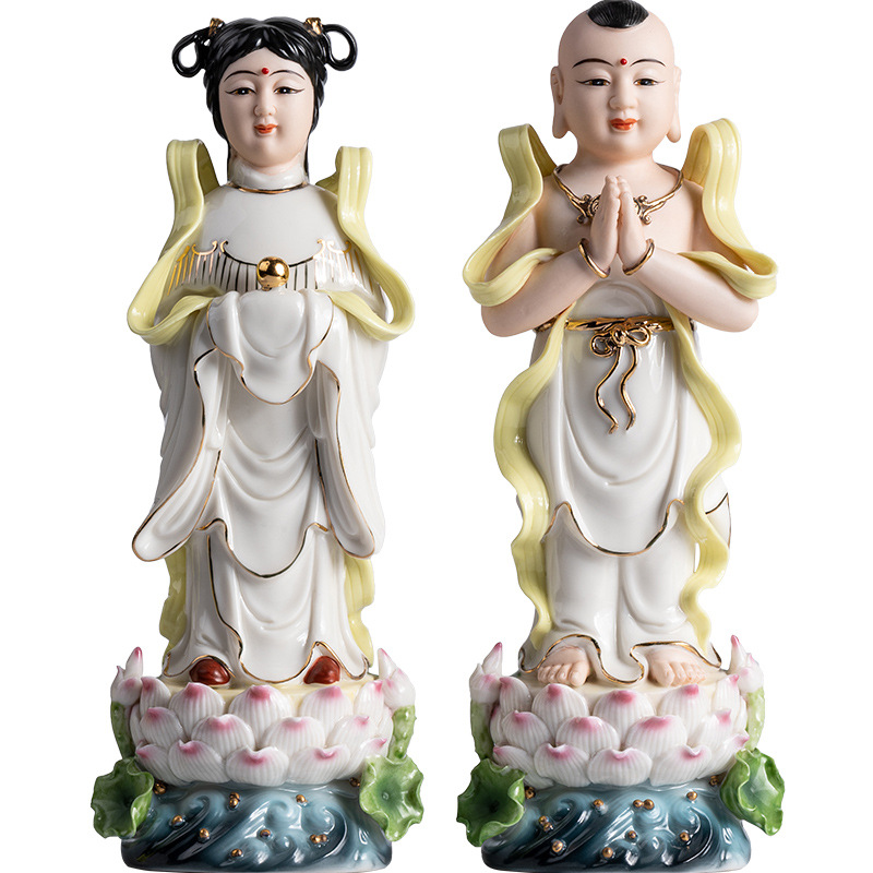 陶瓷善财童子龙女金童玉女观音菩萨像佛像侍奉家用居家供奉摆件