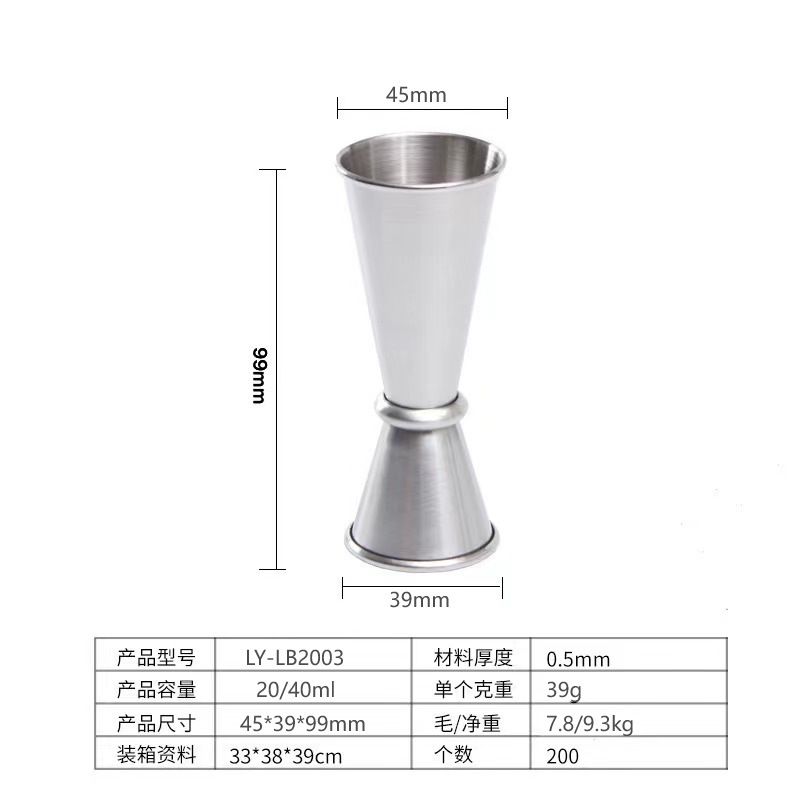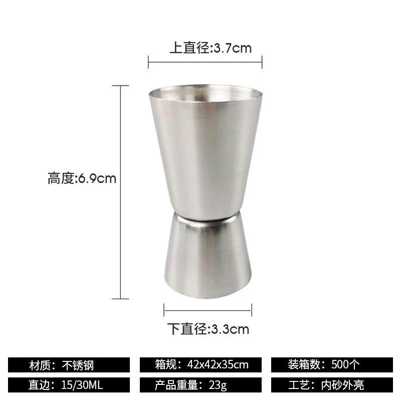 304不锈钢双头调酒量杯直边15/30ml盎司杯卷边30/60ml量酒杯子