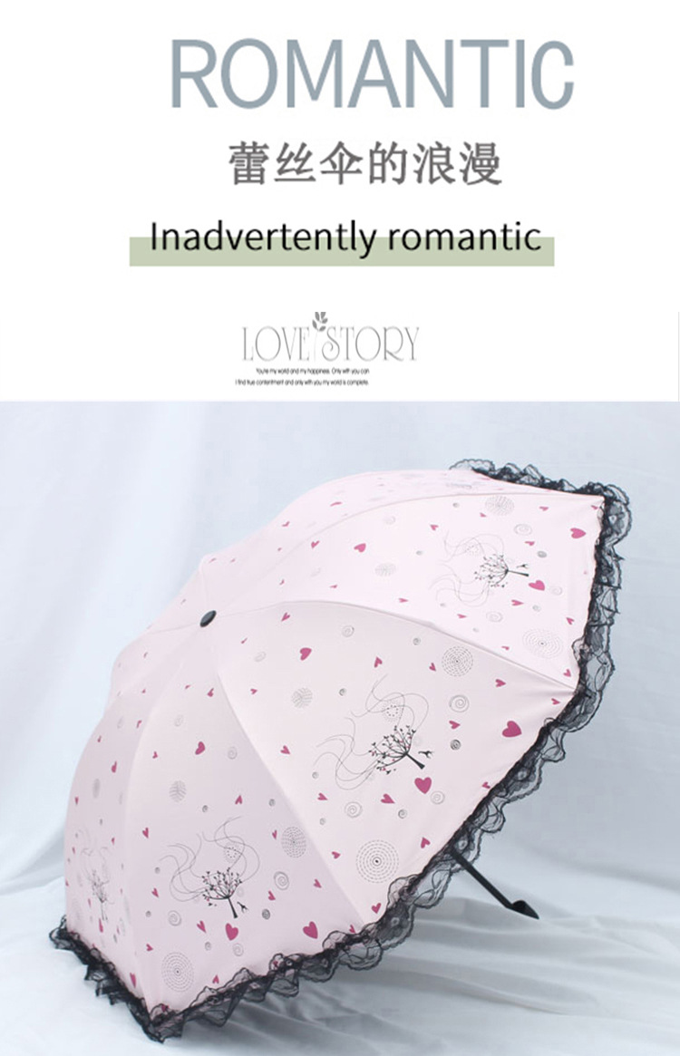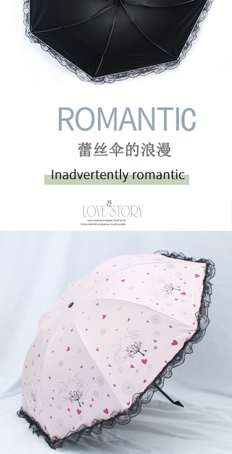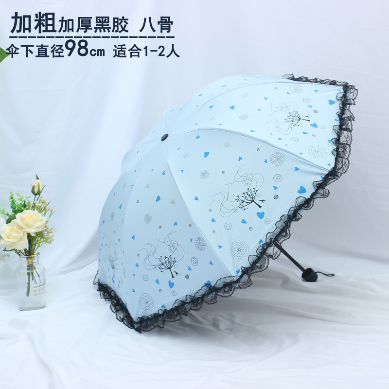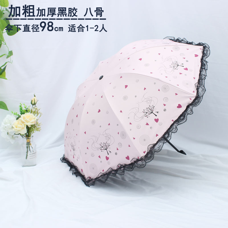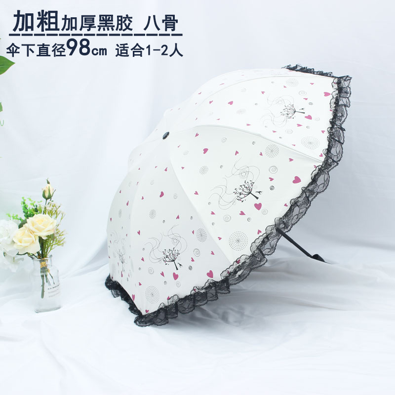 伞三折八骨黑胶蕾丝花边伞常规加粗雨伞防晒防紫外线太阳伞