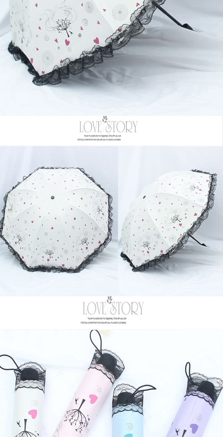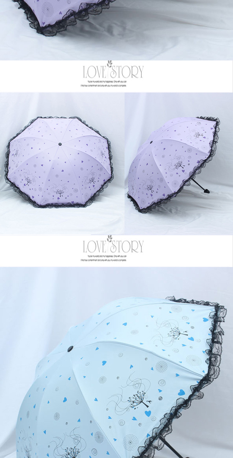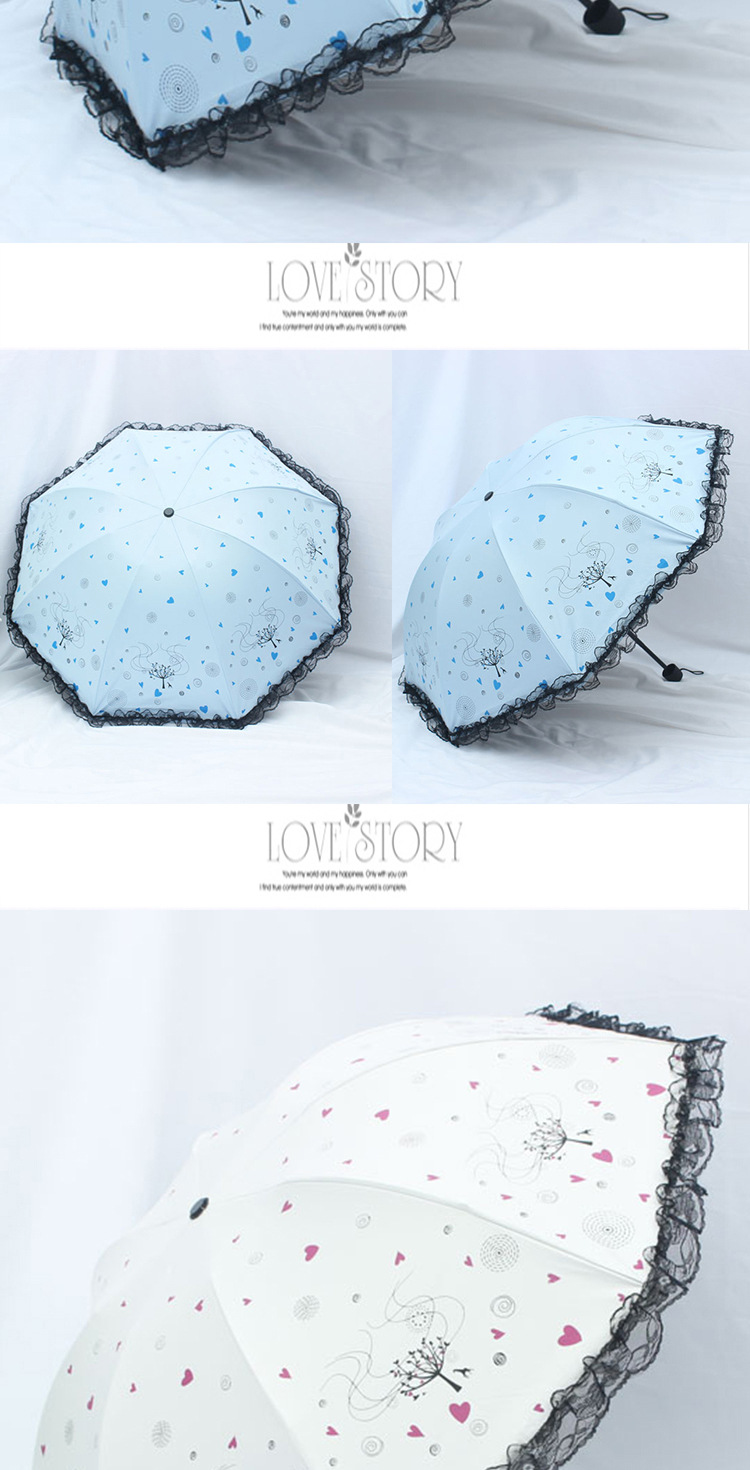 伞三折八骨黑胶蕾丝花边伞常规加粗雨伞防晒防紫外线太阳伞