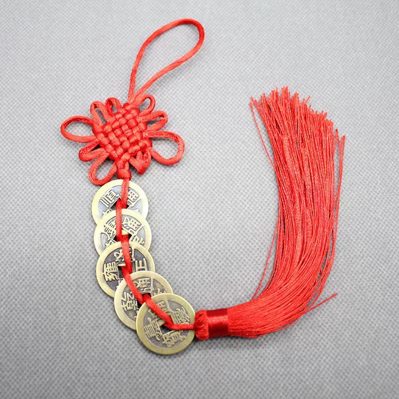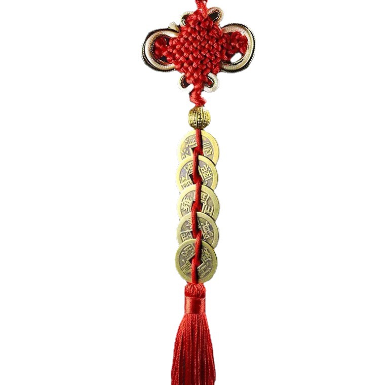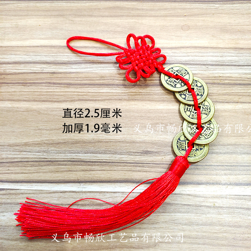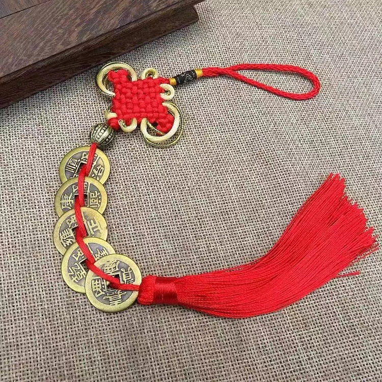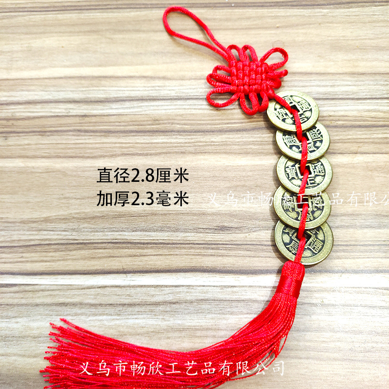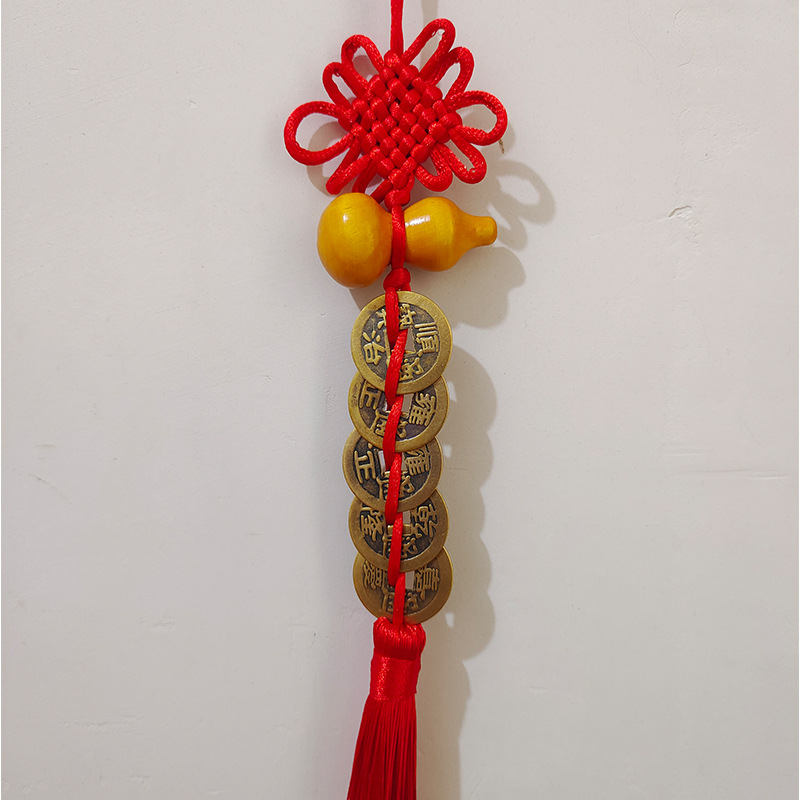纯铜五帝钱挂件桃木葫芦开口黄铜加厚五帝钱葫芦中国结车挂饰