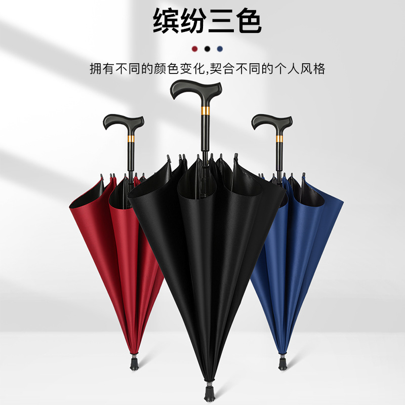 23寸长柄拐杖伞老人登山防滑自动雨伞批发礼品广告伞三折伞