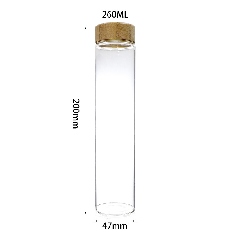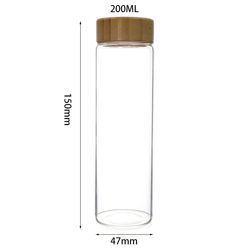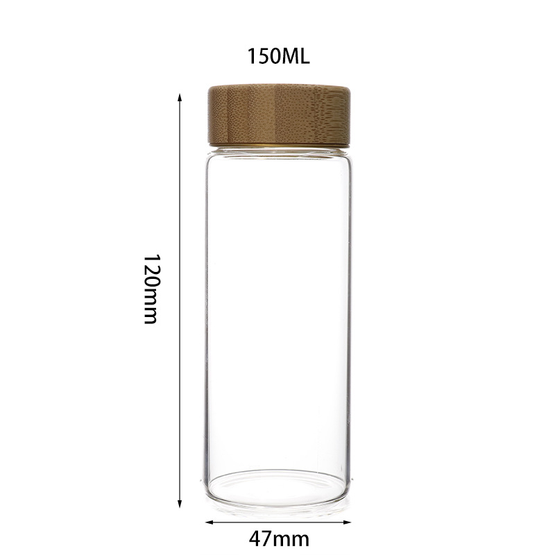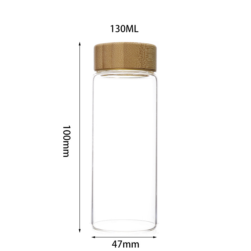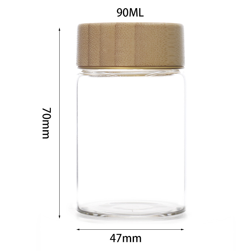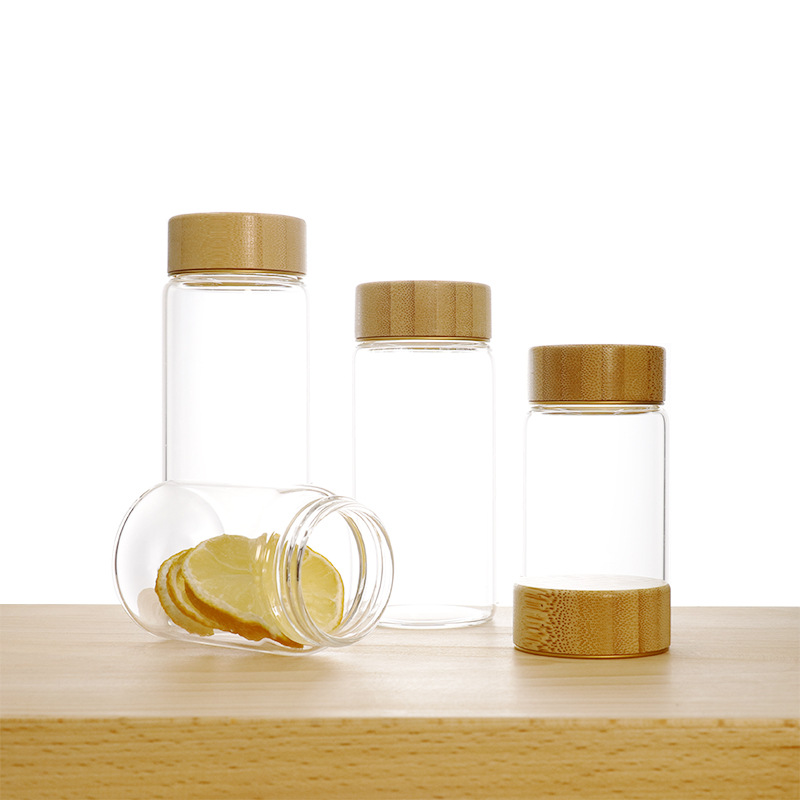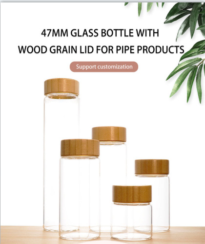 厂家供应直径47竹木盖透明玻璃瓶硼硅瓶谷杂粮收纳瓶防潮储备