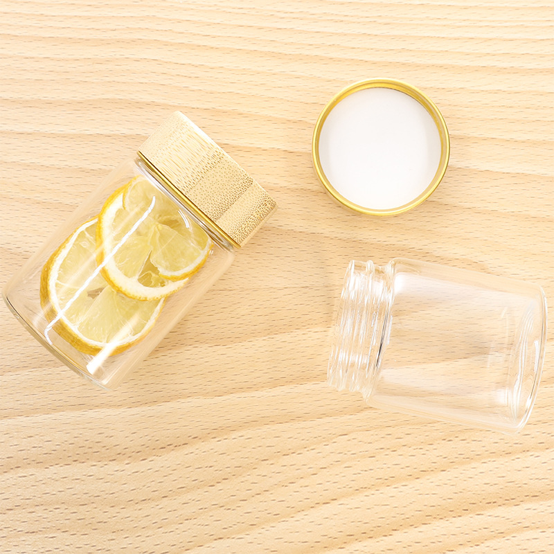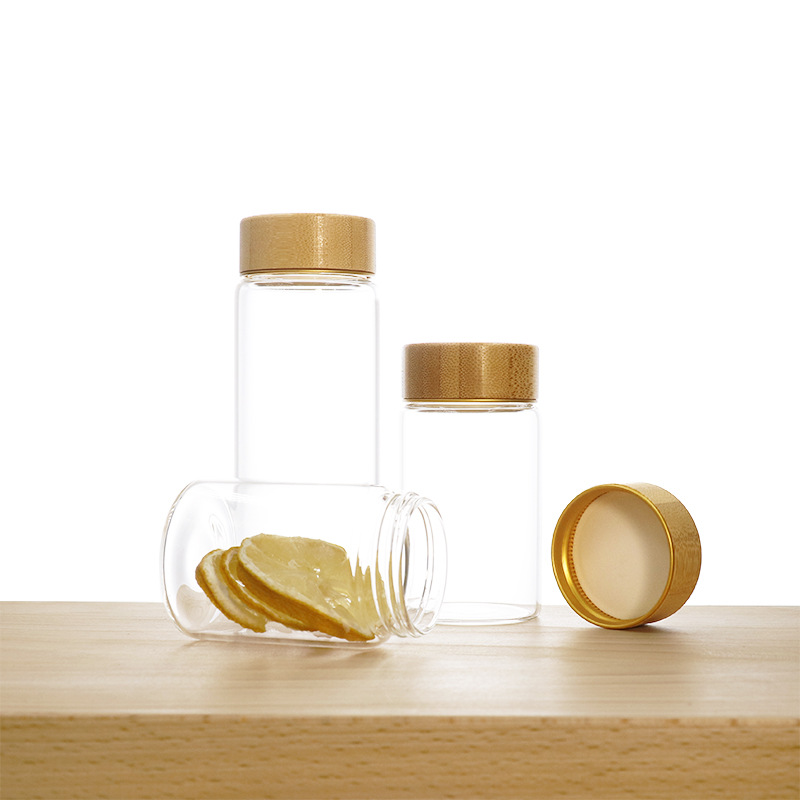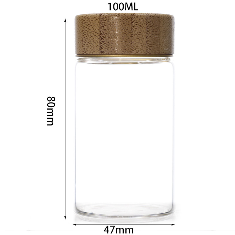 茶叶罐螺口竹盖空瓶瓶子玻璃瓶螺口密封分装瓶管制瓶玻璃密封罐包
