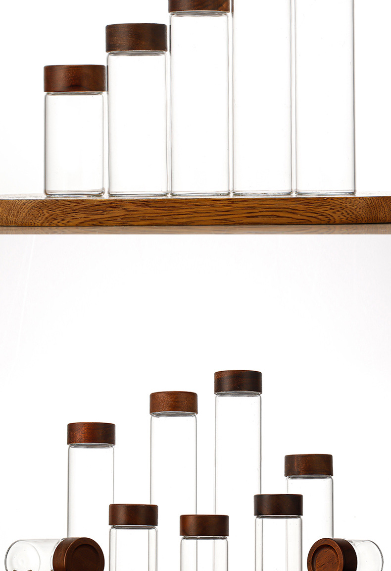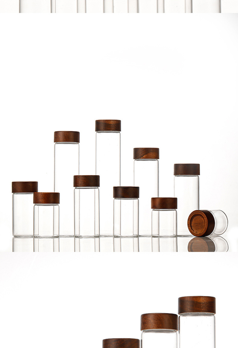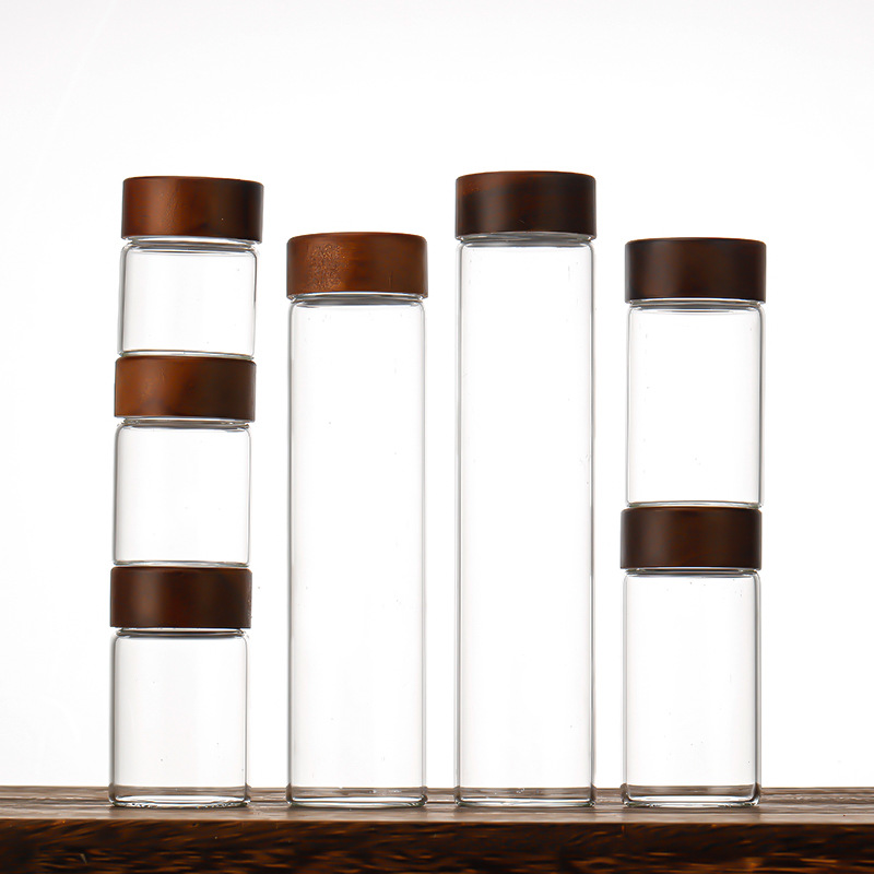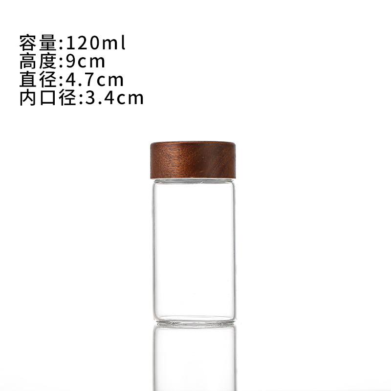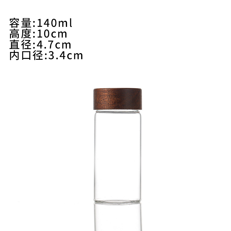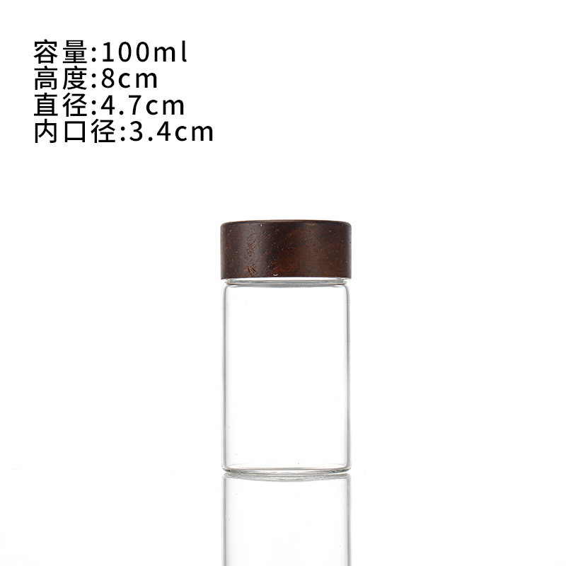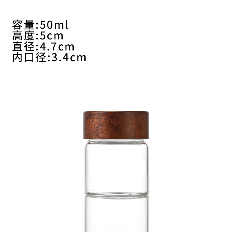 47mm相思木盖高硼硅玻璃瓶文玩手串展示包装瓶密封罐茶叶花茶瓶