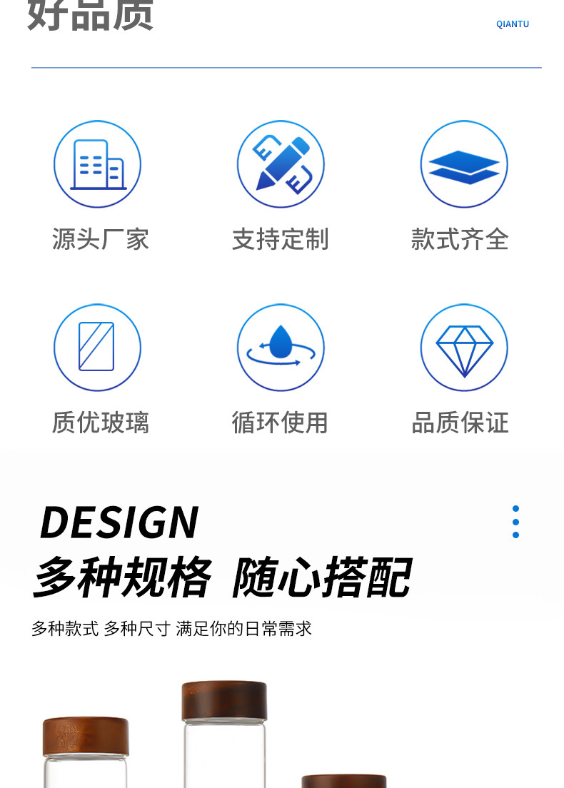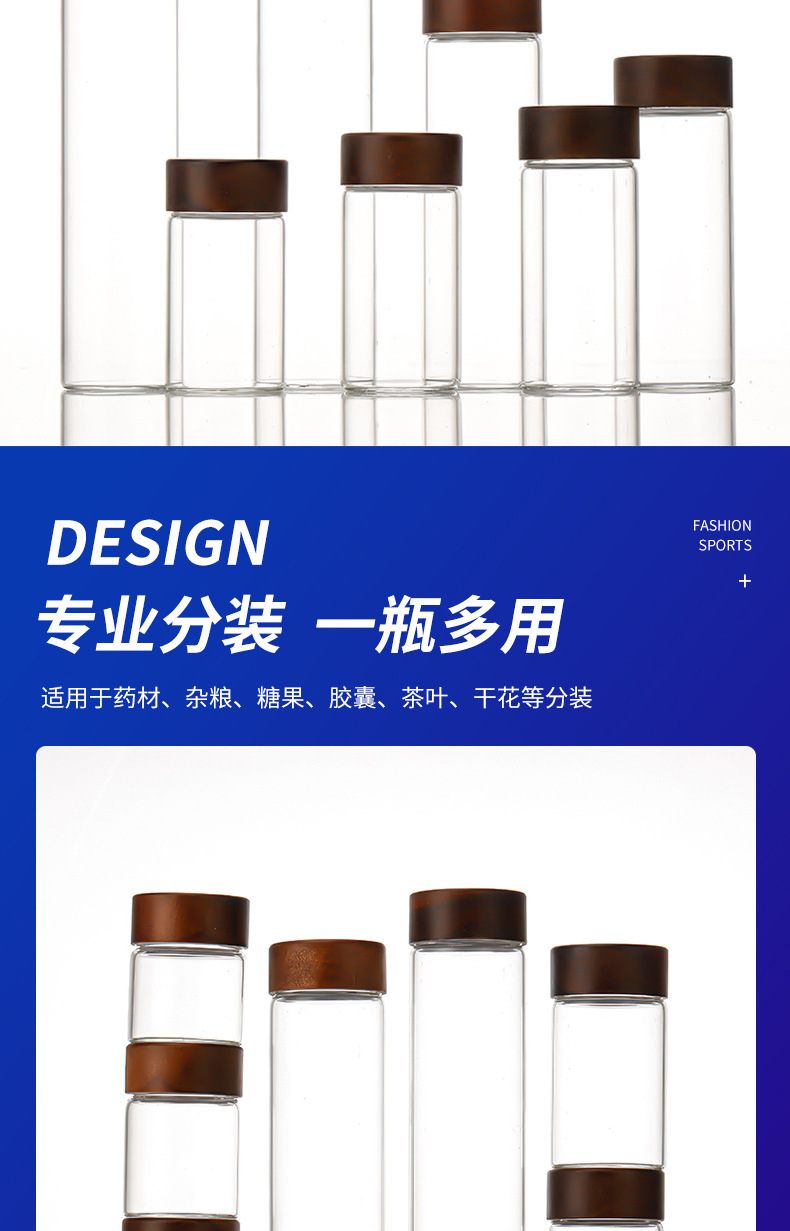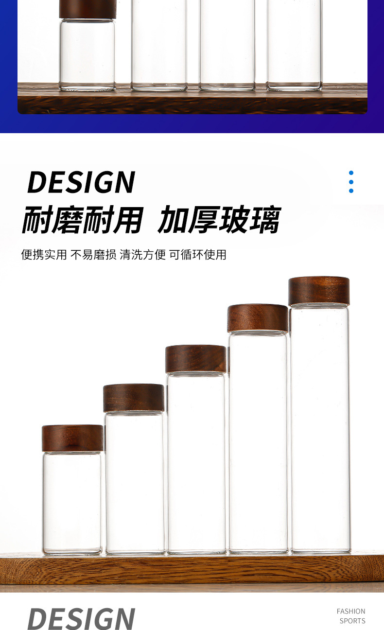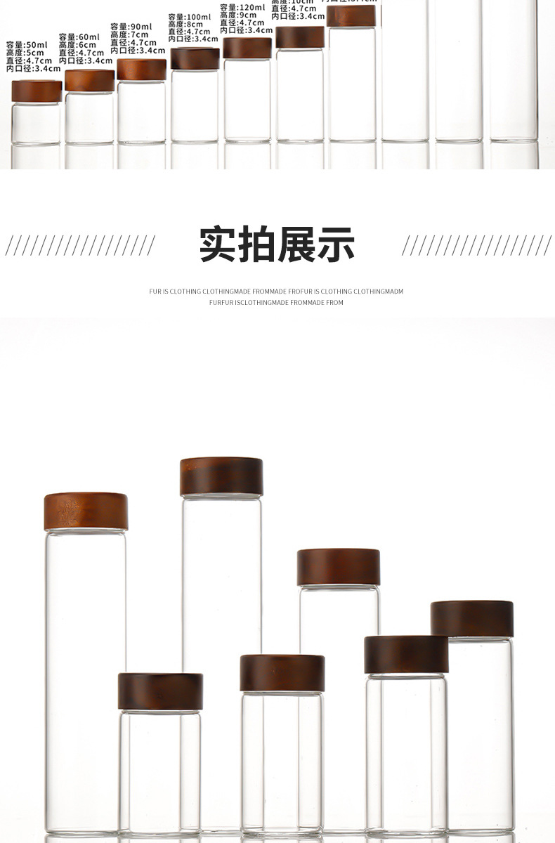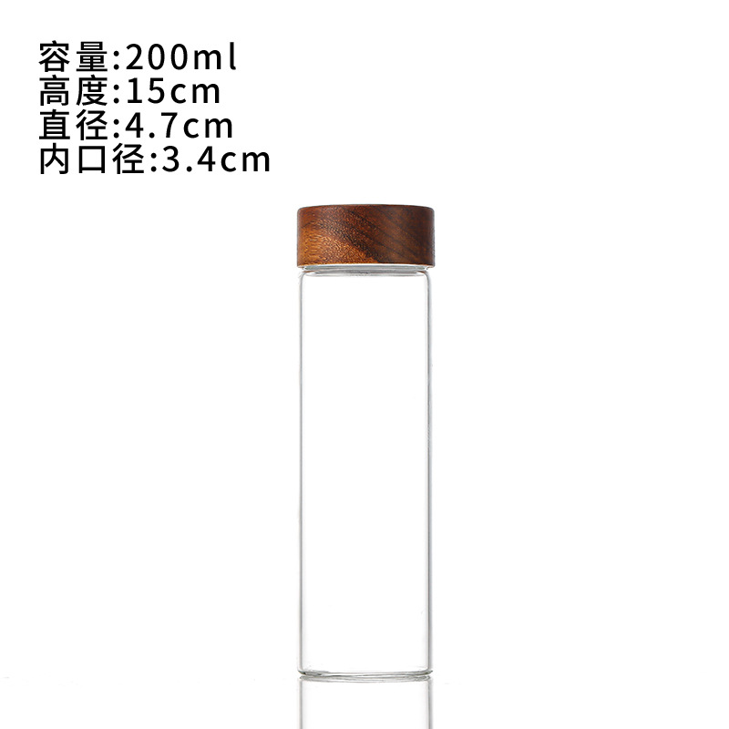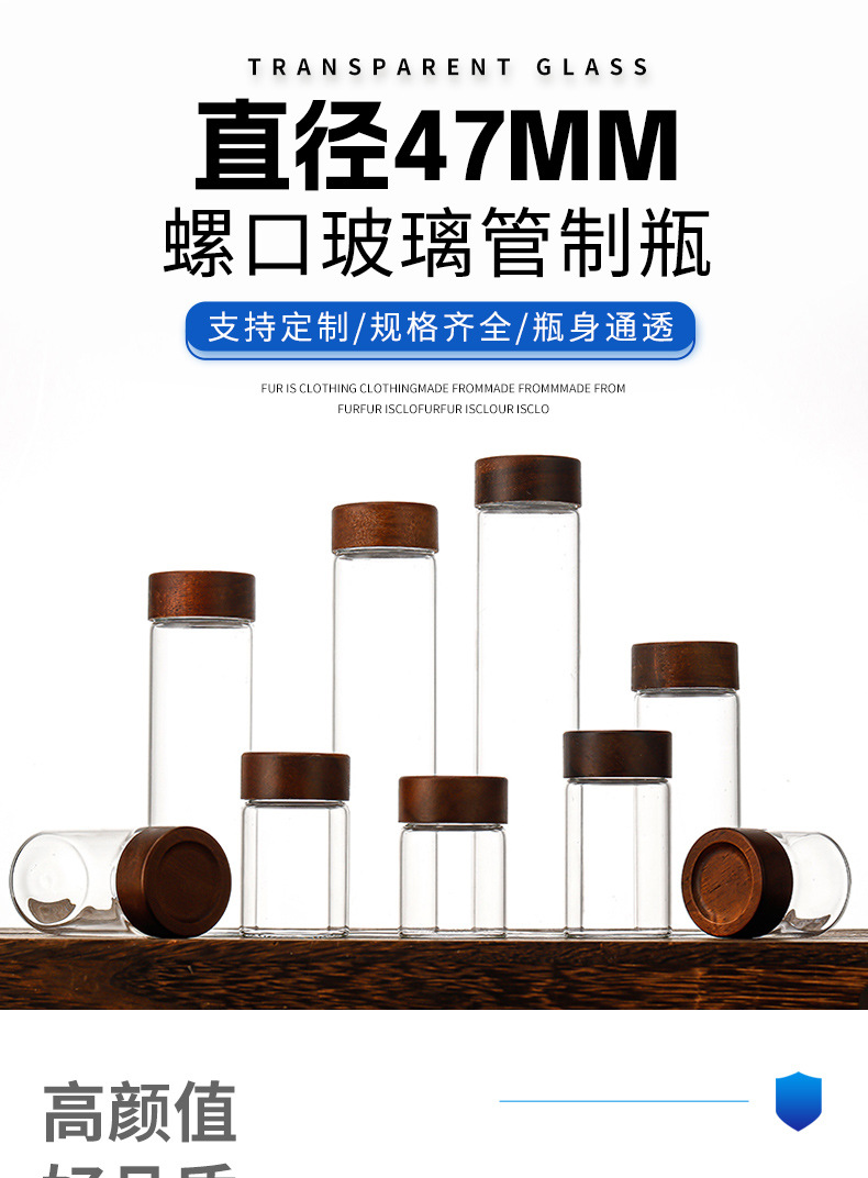 47mm相思木盖高硼硅玻璃瓶文玩手串展示包装瓶密封罐茶叶花茶瓶