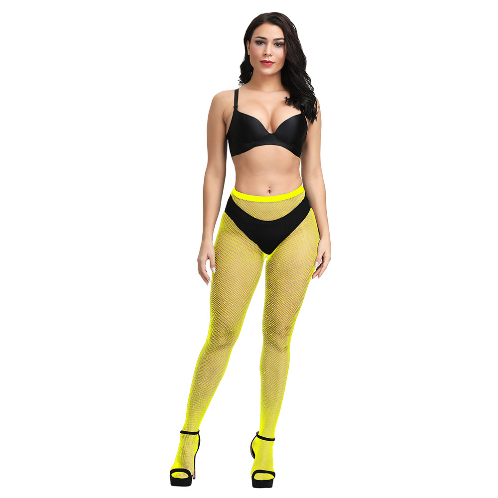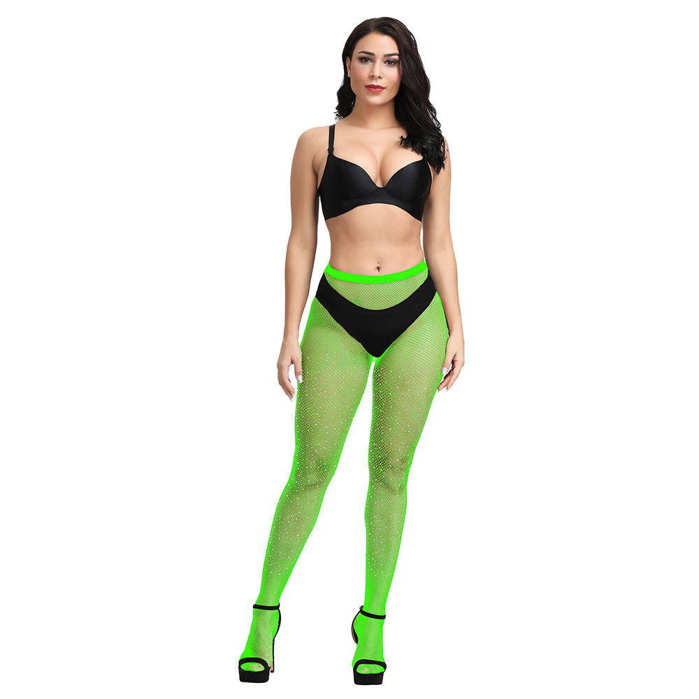 跨境外贸烫钻情趣丝袜性感渔网袜小网连裤袜白钻镂空半钻袜tz138
