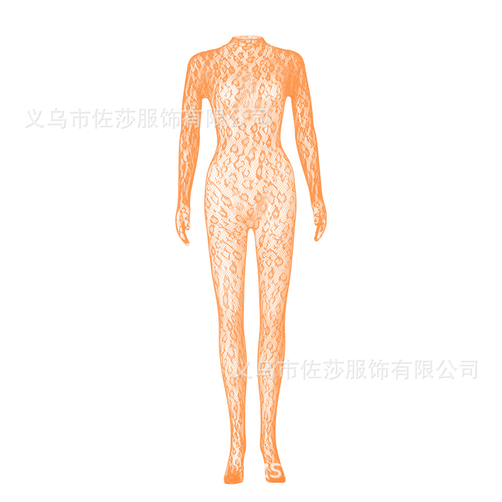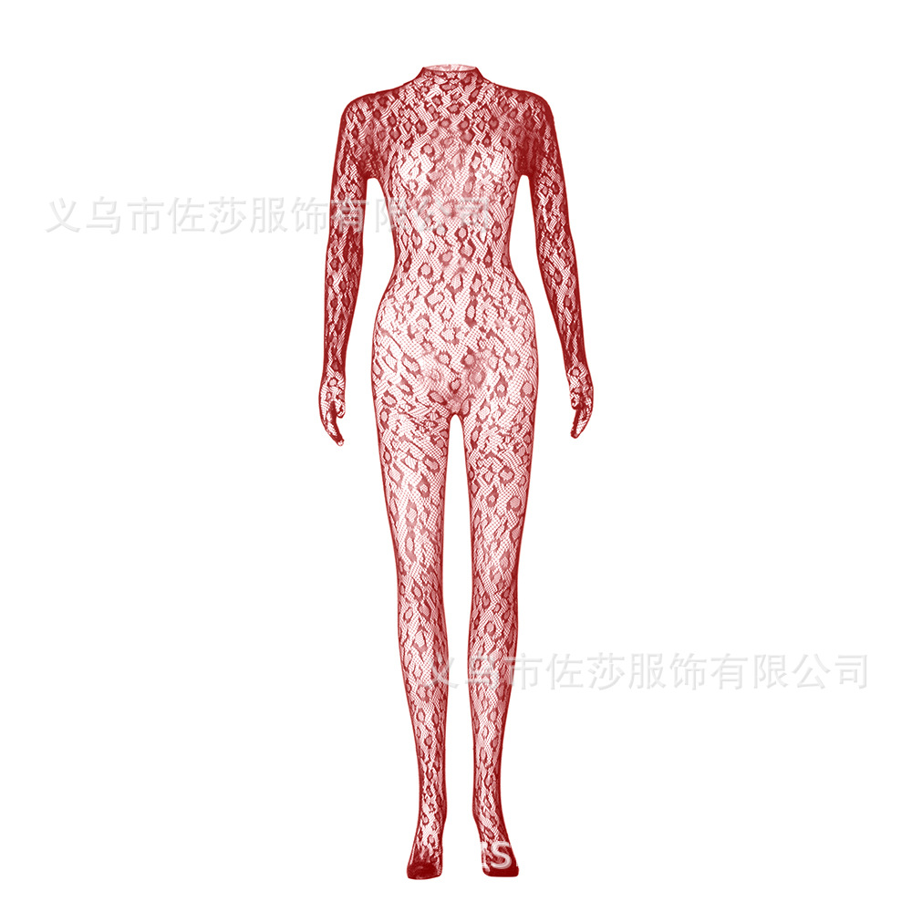 跨境性感情趣内衣欧美长袖连身连体网袜网衣闭裆透视w636