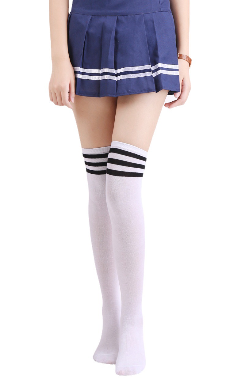 复古三条杠过膝袜