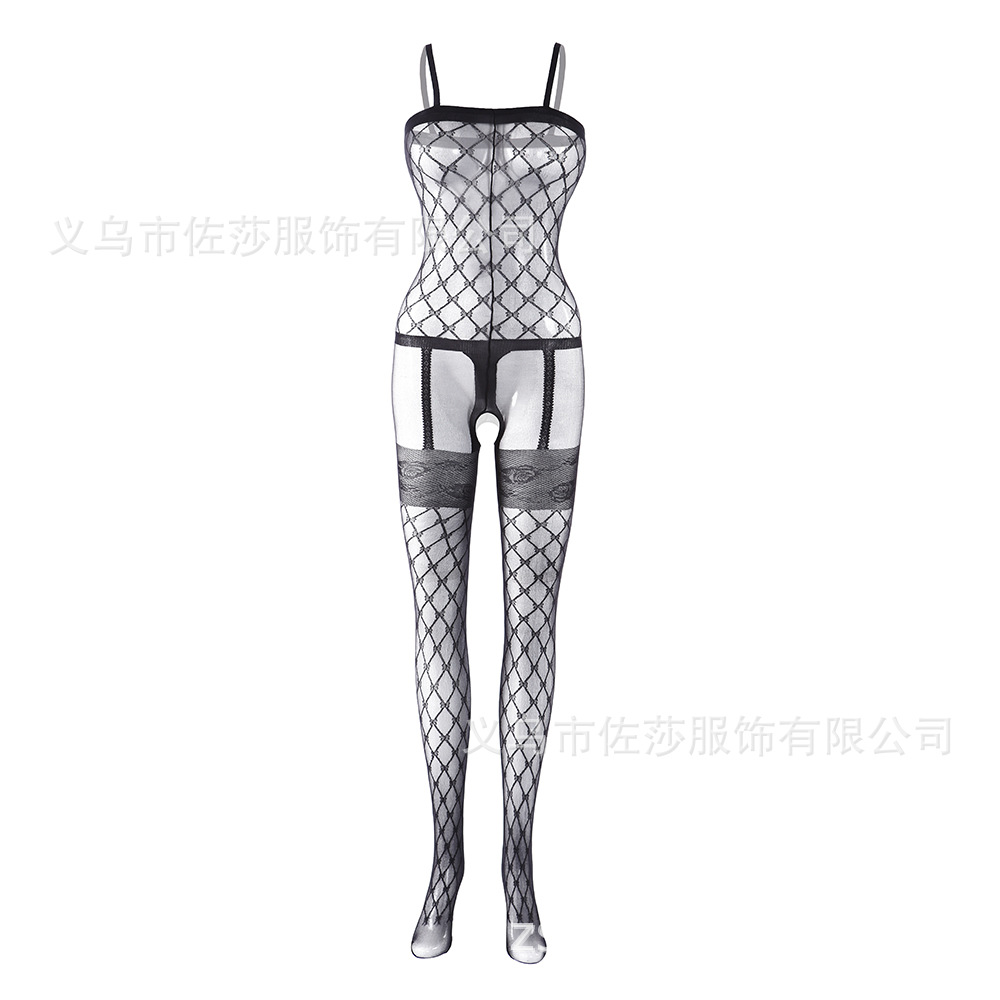 新款连体丝袜情趣内衣 黑色假吊带网格提花连身丝袜 批发w086