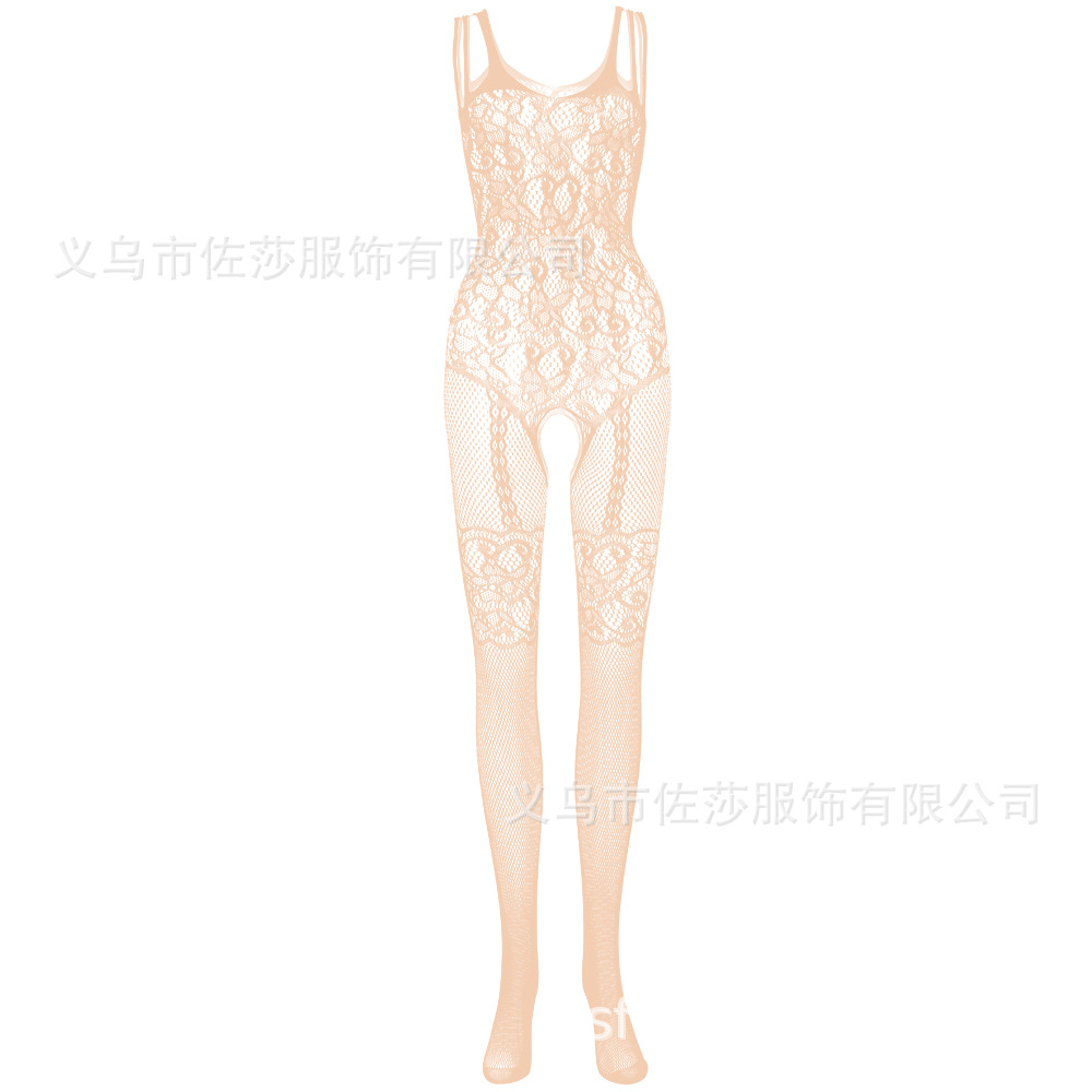 欧美提花吊带连体性感网衣网袜情趣内衣镂空开档吊带袜透明w085