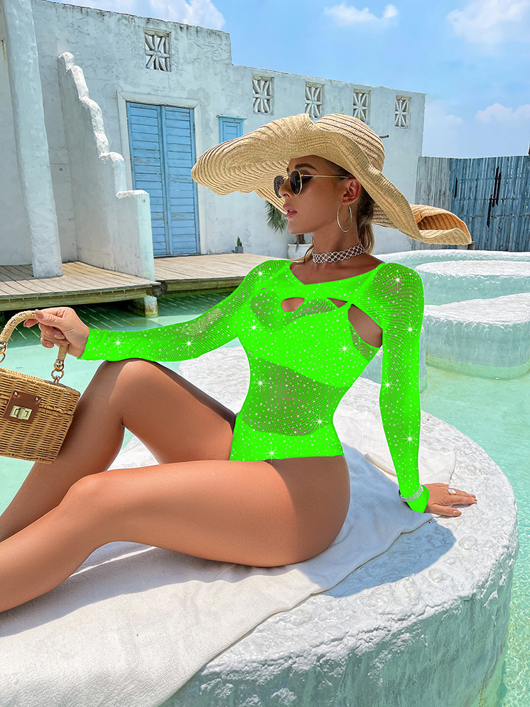 烫钻跨境欧美外贸情趣内衣比基尼包臀长袖紧身衣网衣连体衣tz591