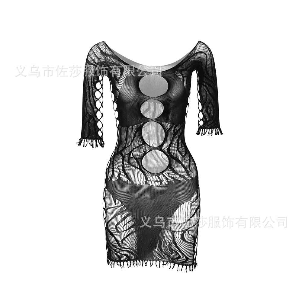 情趣内衣欧美跨境外贸性感包臀裙批发破洞镂空连体网衣w483