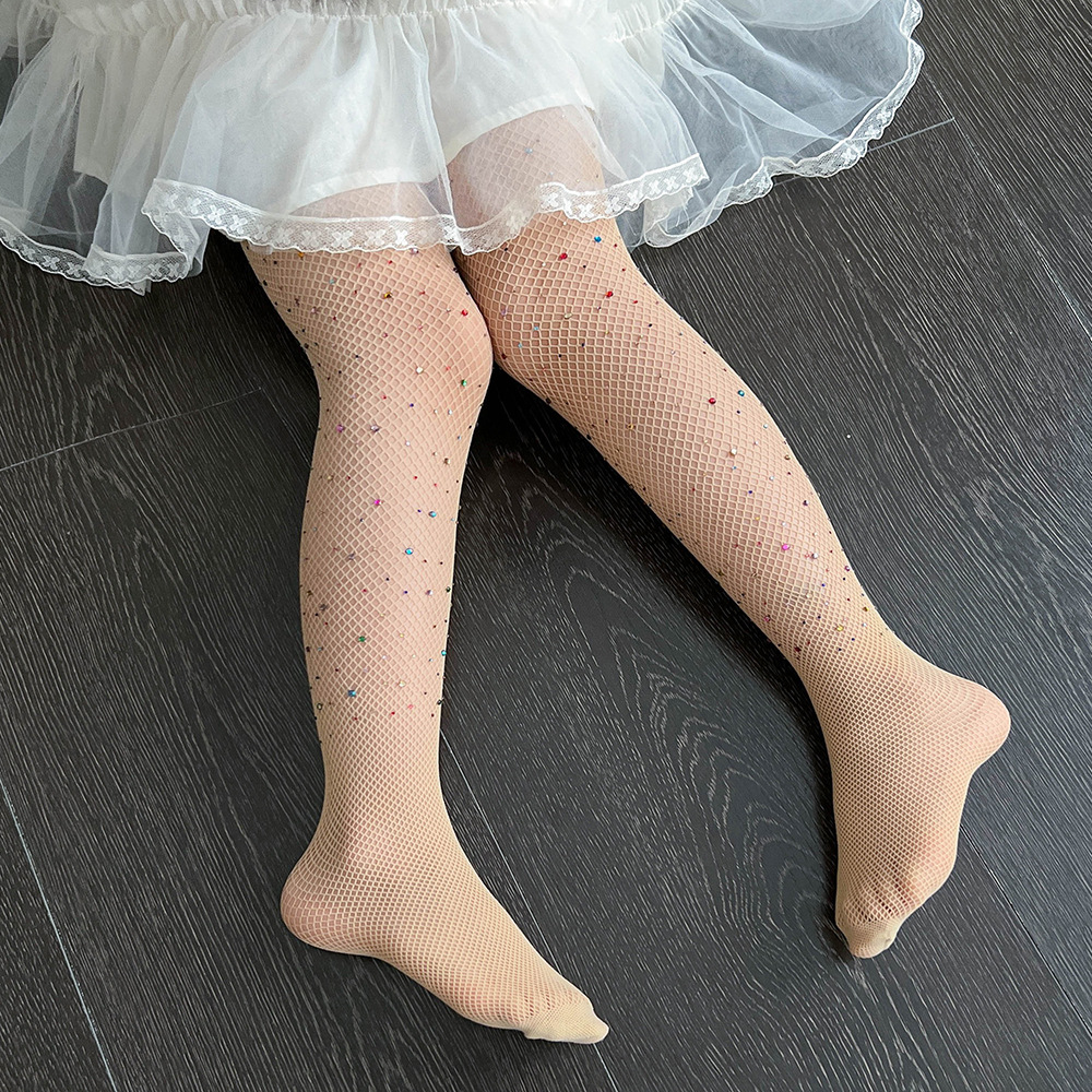 跨境烫钻童袜渔网袜点钻连裤袜带钻彩色网眼袜女镂空打底袜