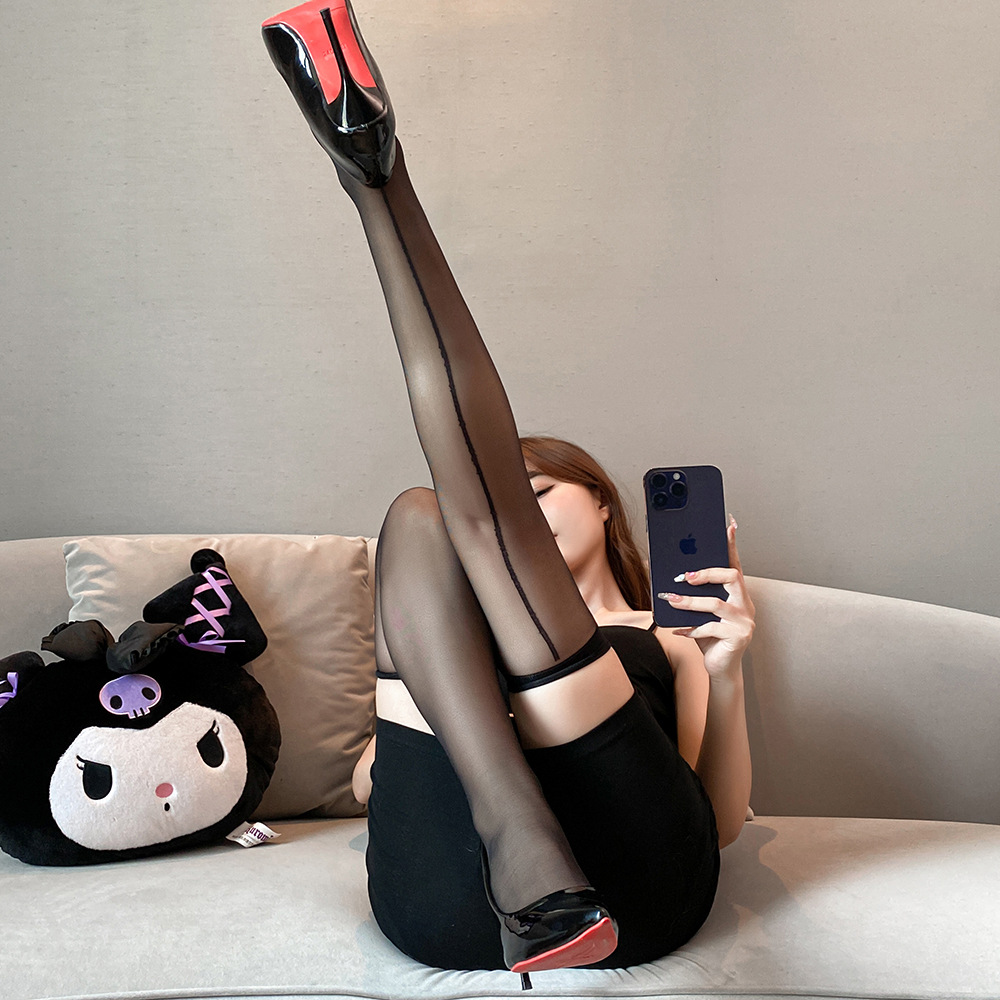 情趣丝袜长筒大腿根女春秋薄款性感纯欲辣妹虾线黑丝过膝袜s191