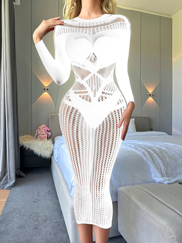 情趣内衣睡裙超大码长袖透明镂空性感网袜女式紧身网衣连体衣w644