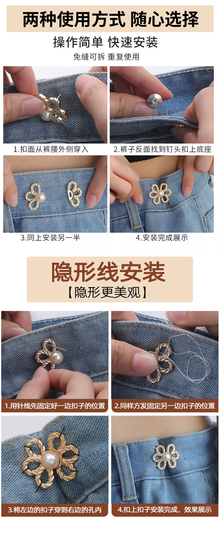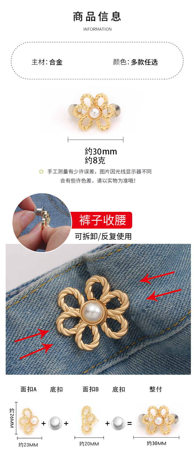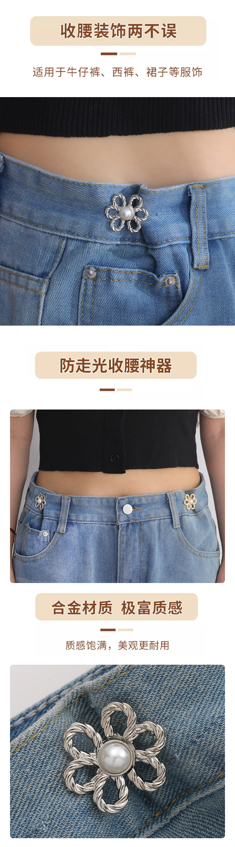牛仔裤花瓣收腰神器裤腰收紧裤子大小调节扣可拆卸腰围花朵收腰扣