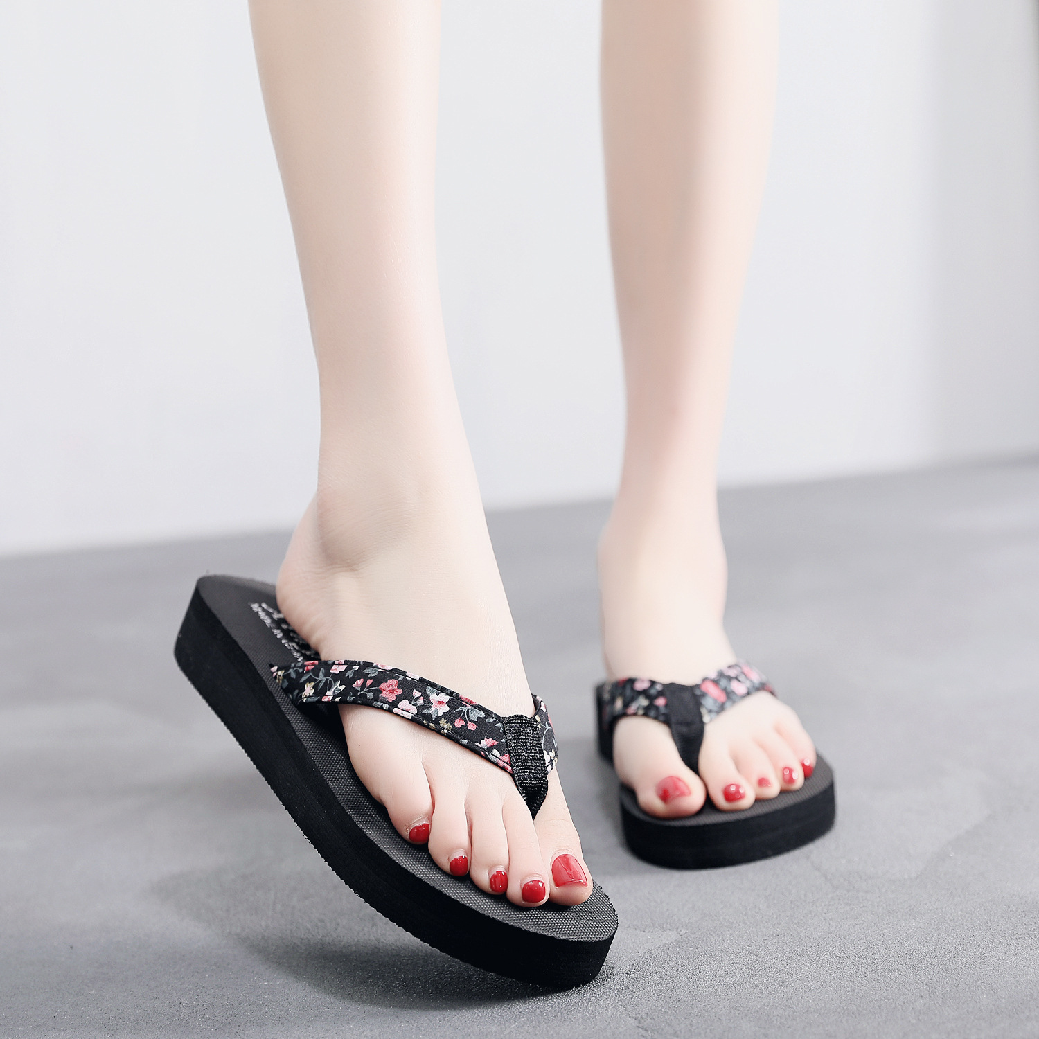 夏季新款3公分手工DIY人字拖女坡布带沙滩鞋夹角凉拖鞋批发