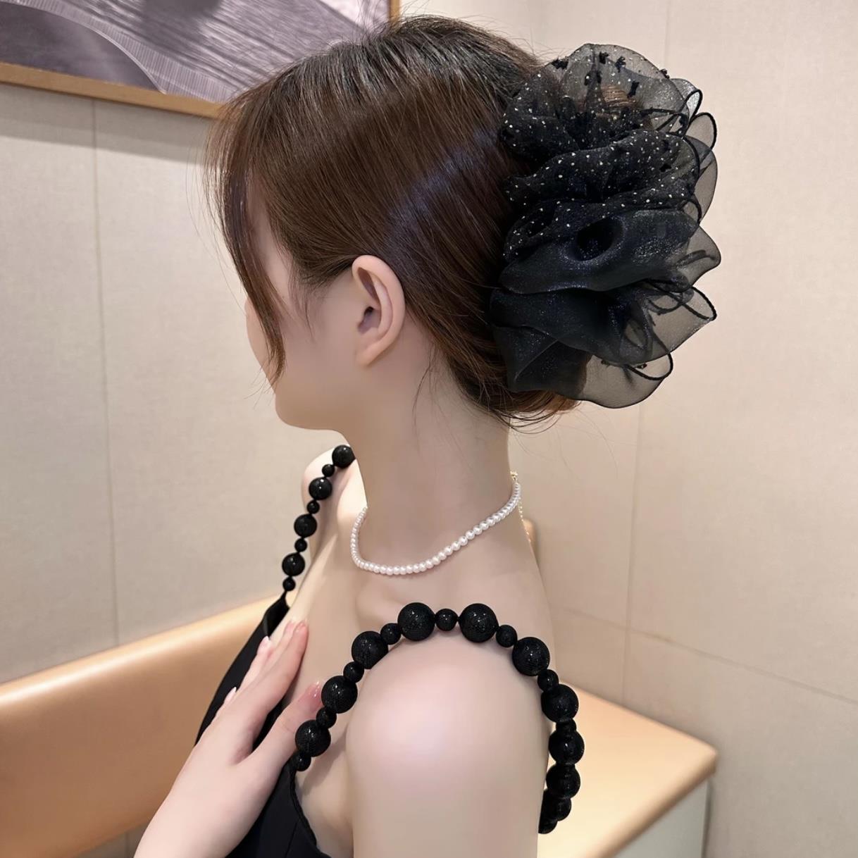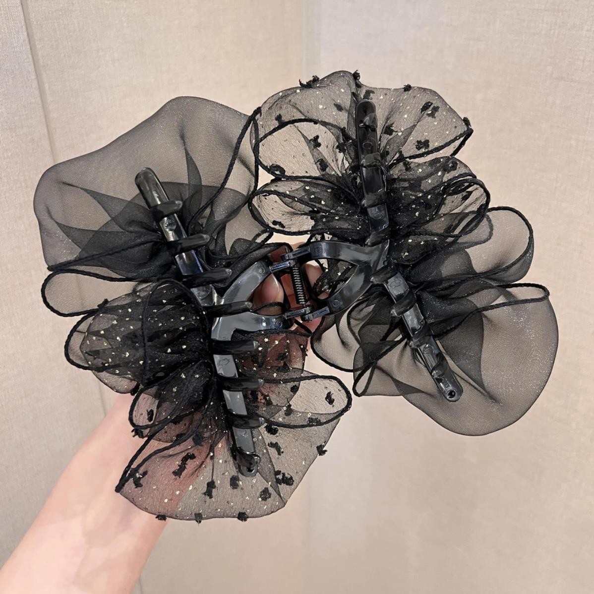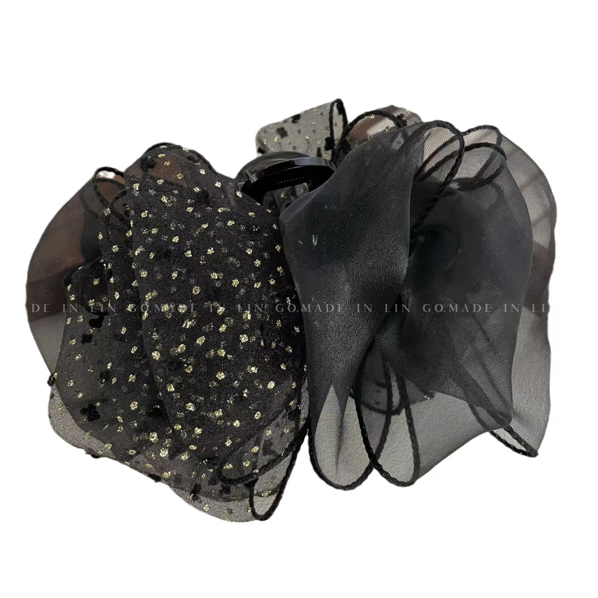 波点双拼网纱抓夹女泡泡云朵蝴蝶结鲨鱼夹头饰