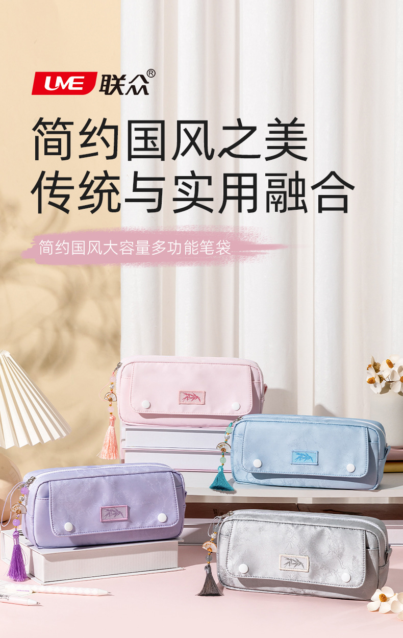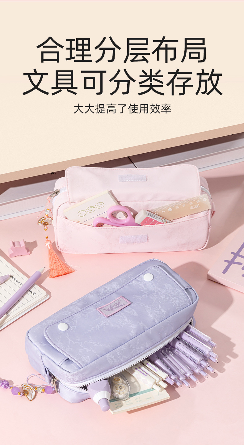 中国风简约美文具盒铅笔袋子文具袋大容量笔袋学生三层笔袋批发
