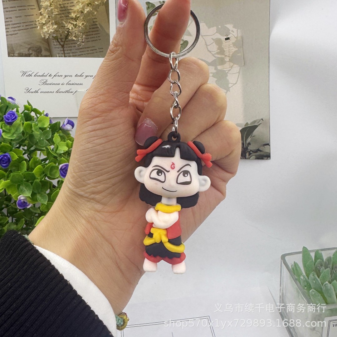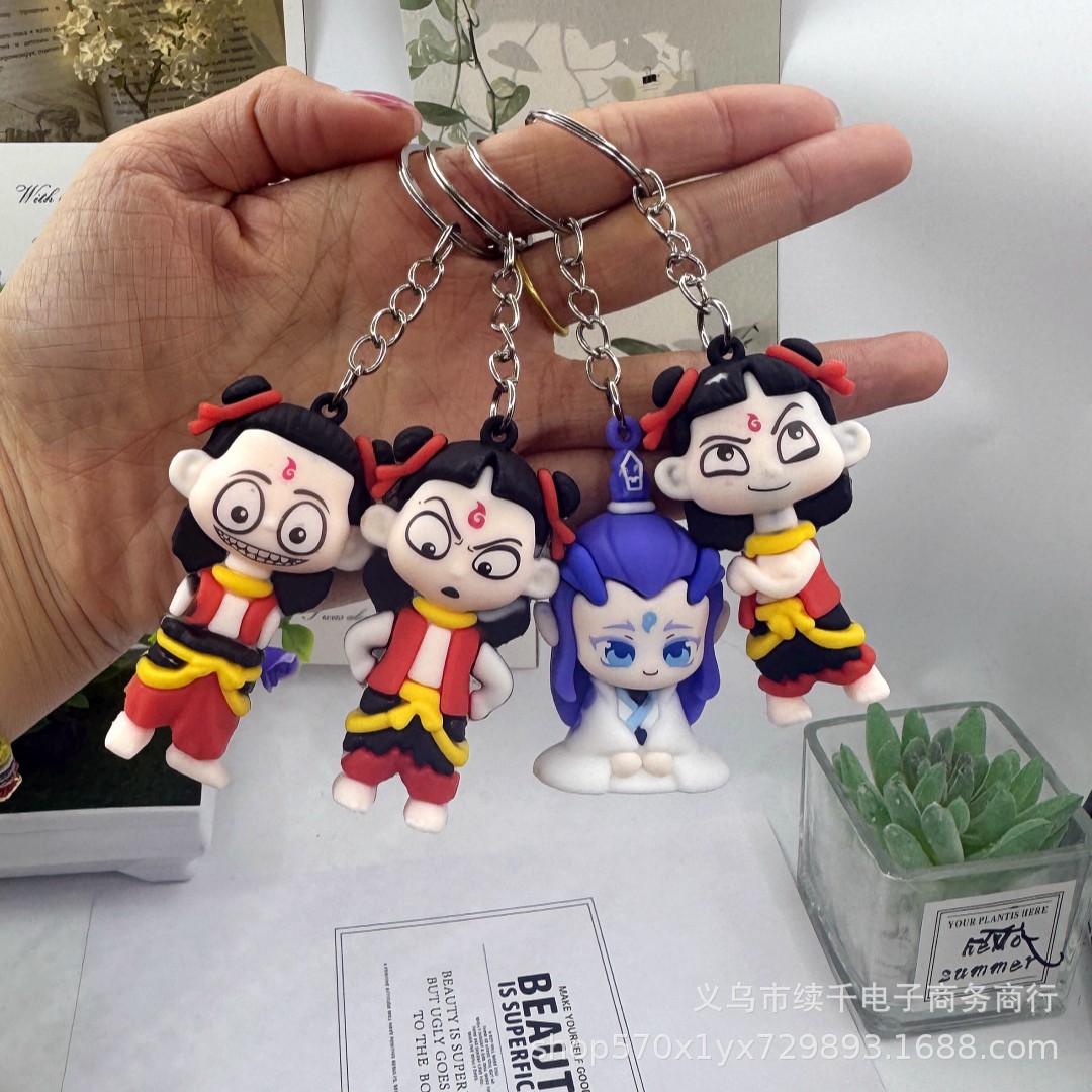 创意魔童闹海钥匙扣书包挂件电影周边汽车小摆件考古盲盒批发